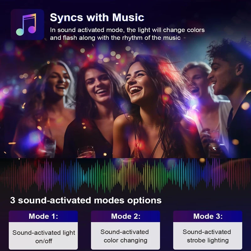 Choose colors,lighting modes,and activate voice control effortlessly with the convenience or the remote
