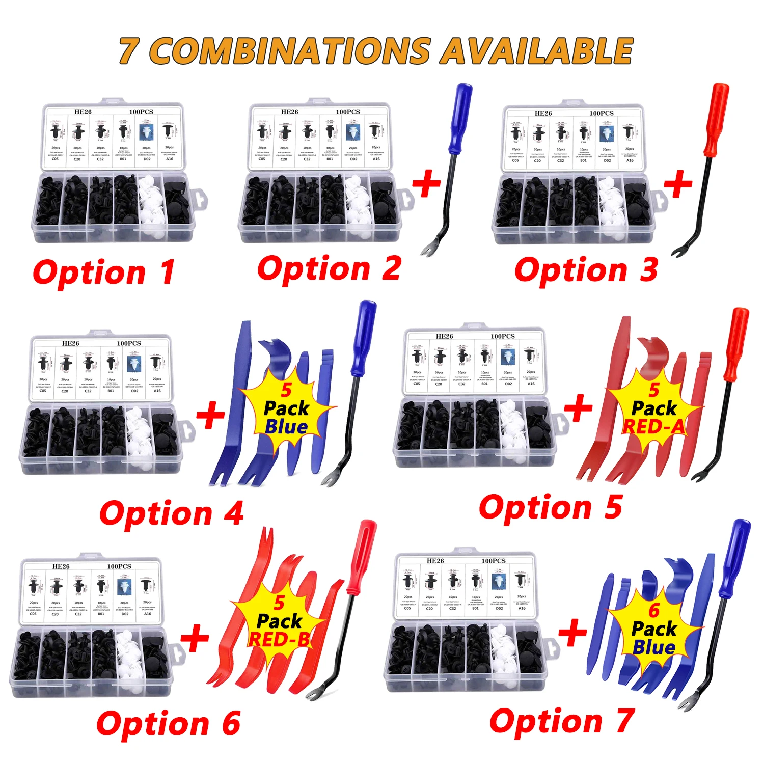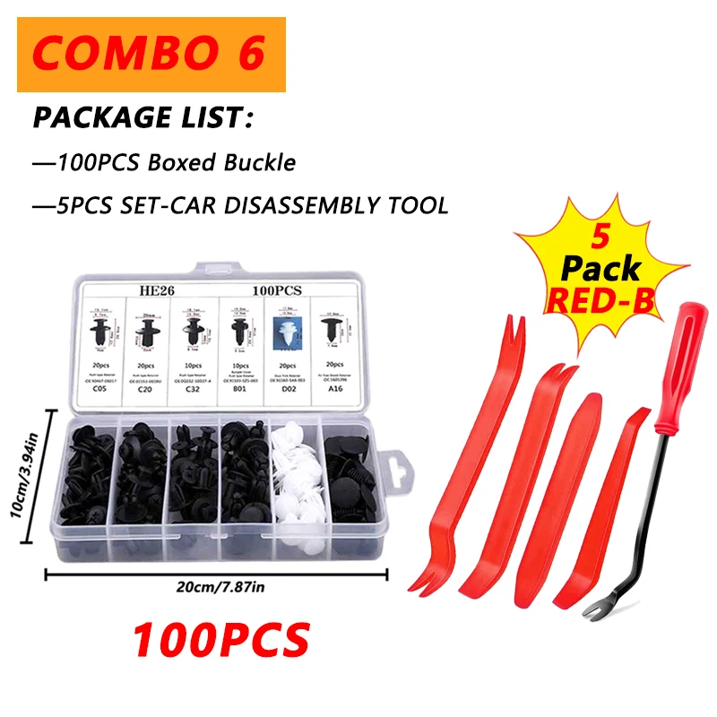 100PCS Boxed Buckle & 5PCS SET-CAR DISASSEMBLY TOOL【Set A】 (Red/Blue)