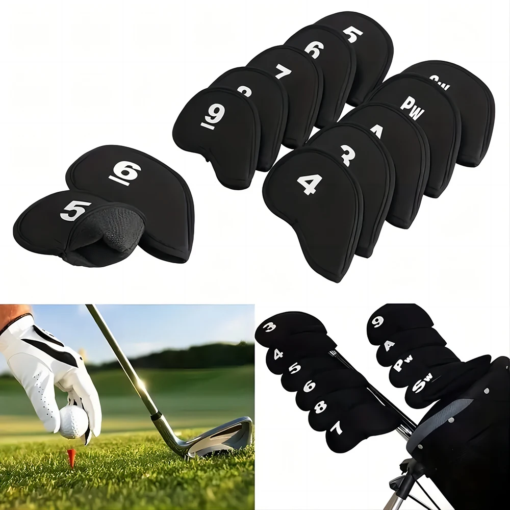 10Pcs/set Golf Iron Head Covers Iron Golf Club Protective Black/Red/Blue Golf Club Iron Head Protector Golf Accessories