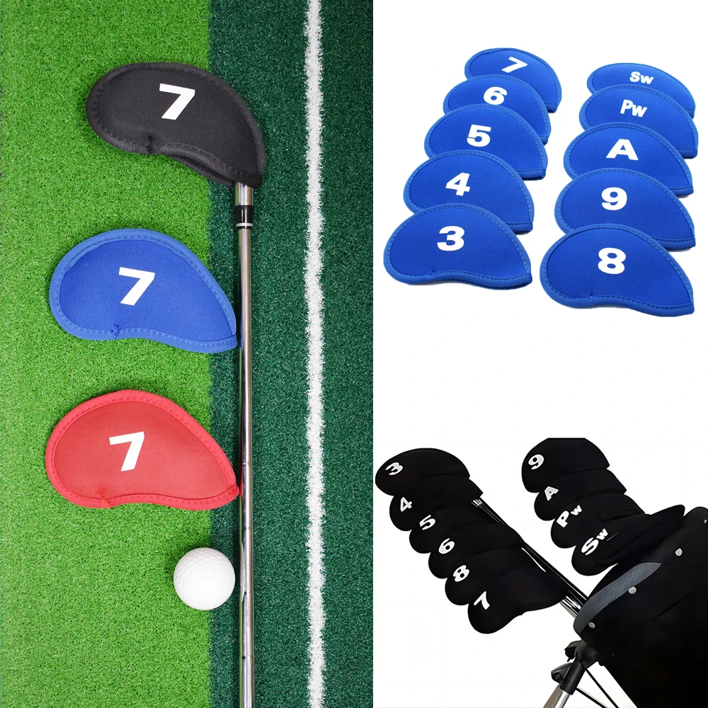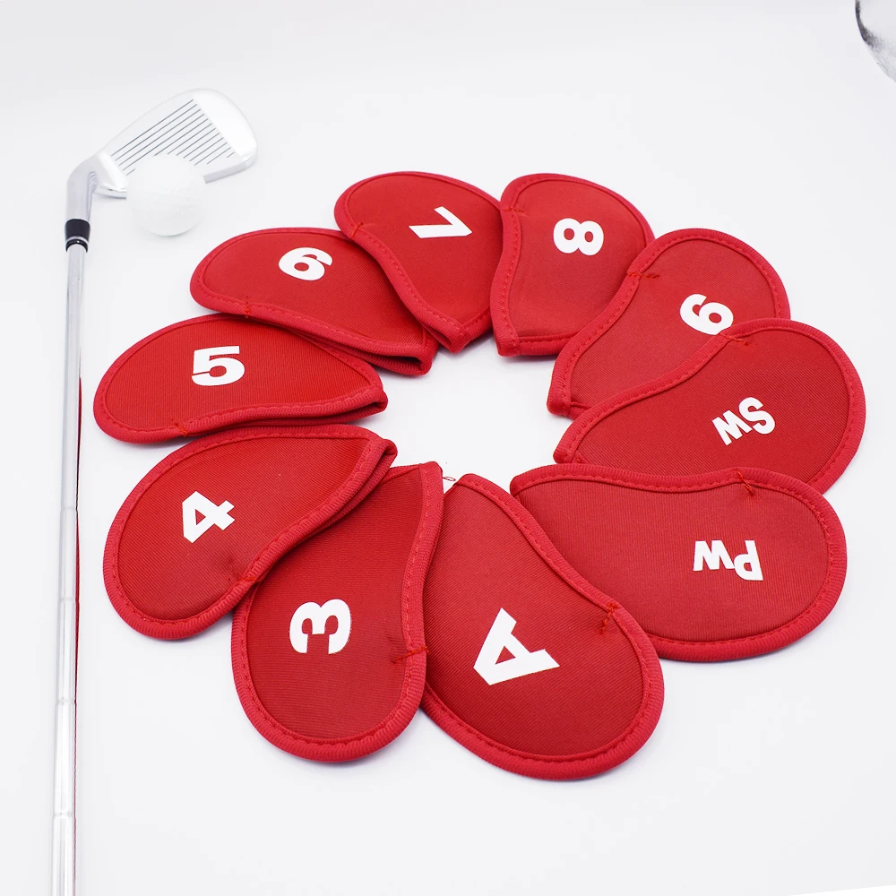 SPECIFICATIONS Brand Name: NoEnName_Null Choice: yes Hign-concerned Chemical: None Origin: Mainland China 10Pcs/set Golf Iron Head Covers Iron Golf Club Protective Black/Red/Blue Golf Club Iron Head Protector Golf Accessories