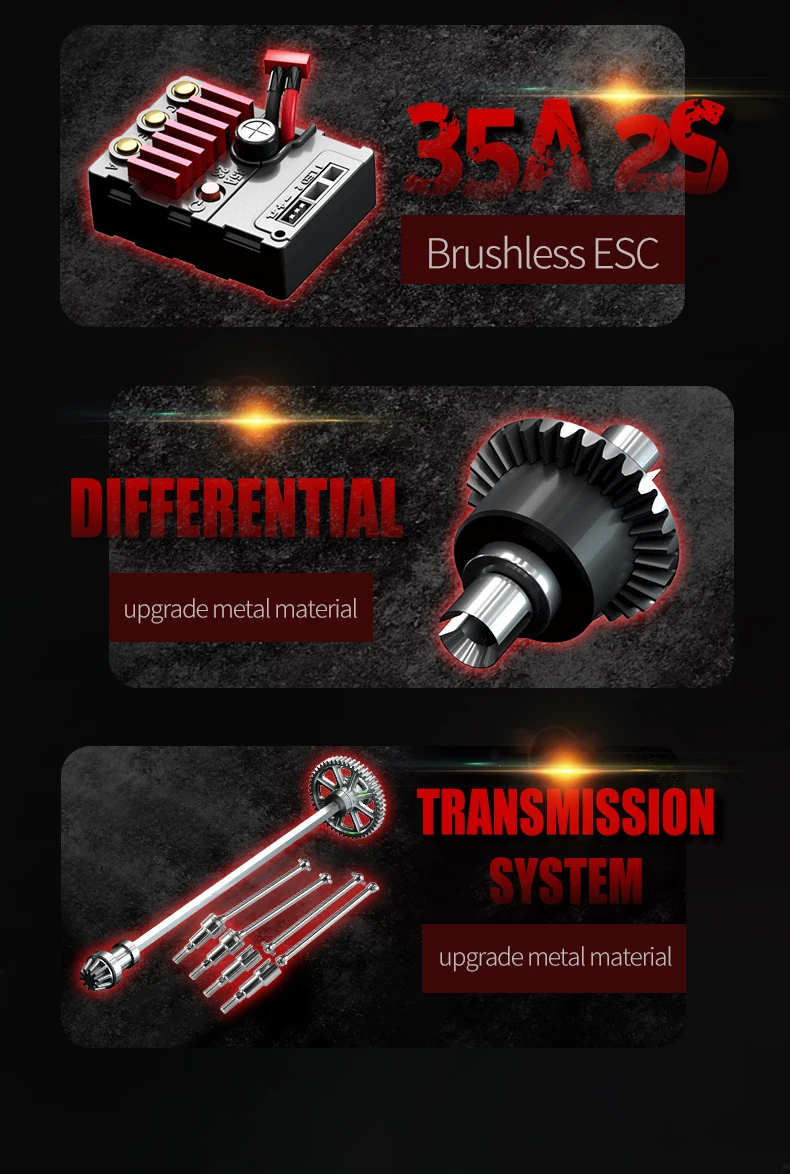 4. 2.4G full-proportional synchronous remote control system. Full-proportional throttle/steering;