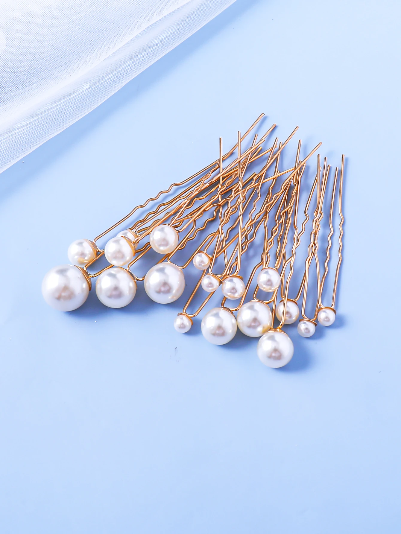 SPECIFICATIONS Brand Name: NoEnName_Null CN: Zhejiang Choice: yes Department Name: Adult Hign-concerned Chemical: None Is_spot: Yes Material: Metal Origin: Mainland China Bridal Hairpin 18Pc in a packet