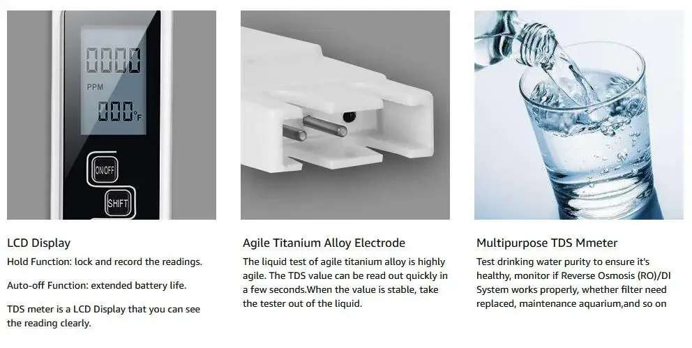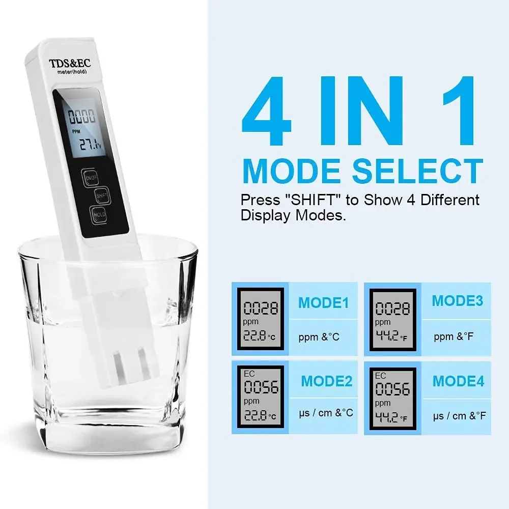 Multi-functional: Provides accurate and reliable test readings; 3-in-1 digital tds meter provides accurate readings for TDS (total dissolved solids) EC (electrical conductivity) and temperature.