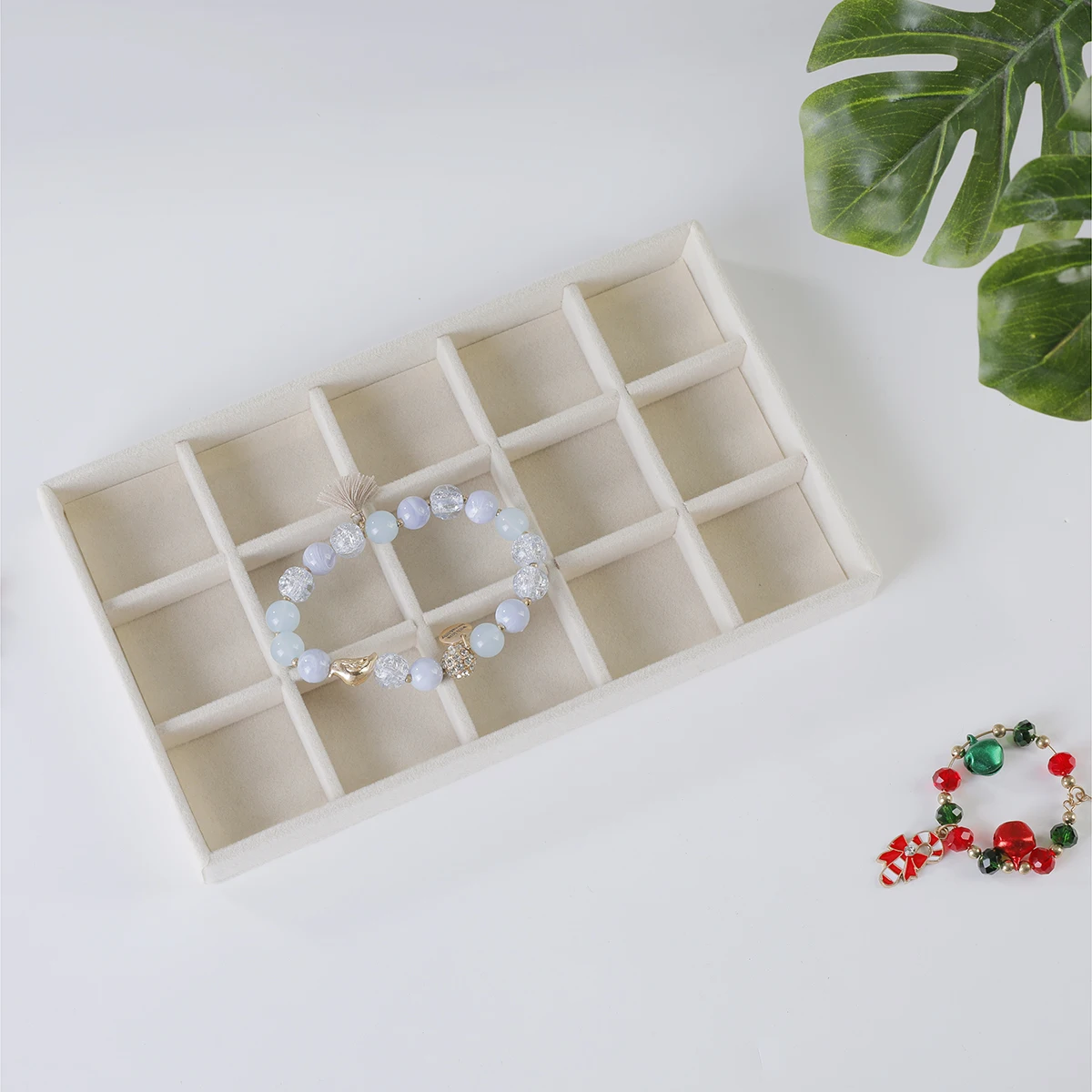 1PC, Flocking Jewelry Box Jewelry Tray, Color: Beige