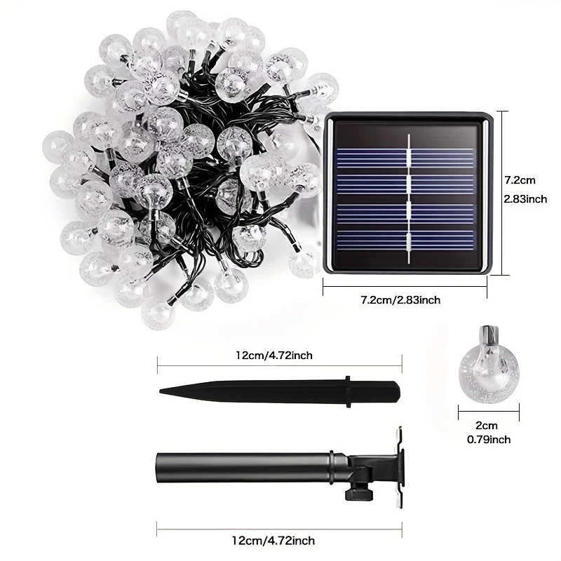 2.Energy saving led lights: long string with 20/50/100 super bright led bulbs, powered by solar energy, can save electricity and money which enable your life to practice the concept of sustainable development and improve the quality of life. It can still be touched safely after it has been working for some time, which is a friendly product.