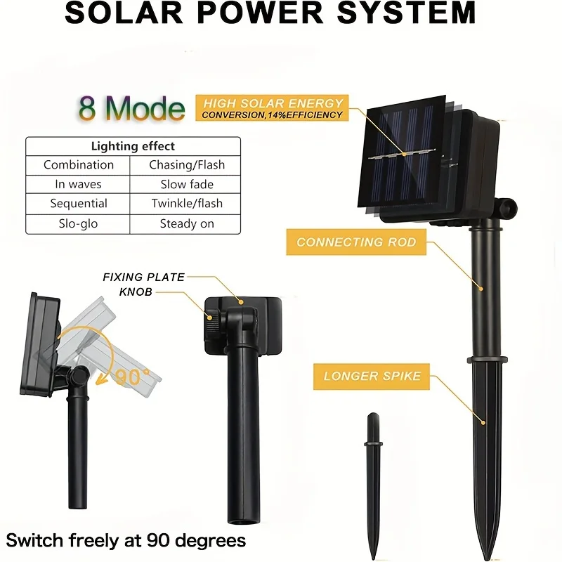 3.Multifunctional 8 lighting modes: Beautiful and brilliant lighting modes include waves, combination, sequential, gradual, chasing flash, slow fade, twinkle flash and steady on. 8 lighting modes can meet all your requirements for different lights.