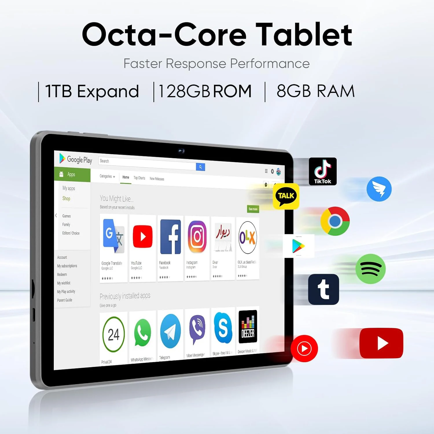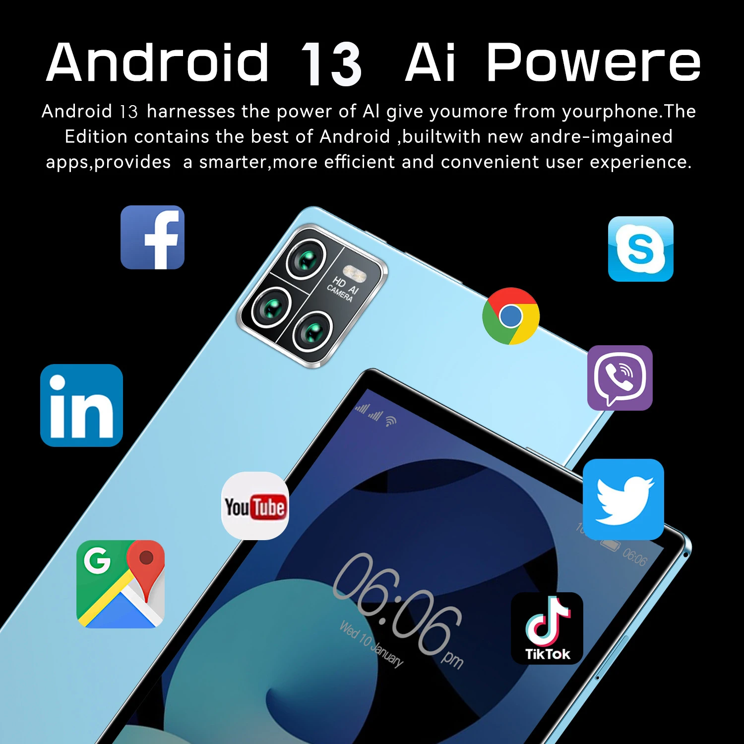 2025 New Original 10 Inch Android 13 Tablet PC Octa-Core 5G WiFi6 256GB 8000mAh IPS Display Dual Camera Bluetooth FM Tablet 10.1