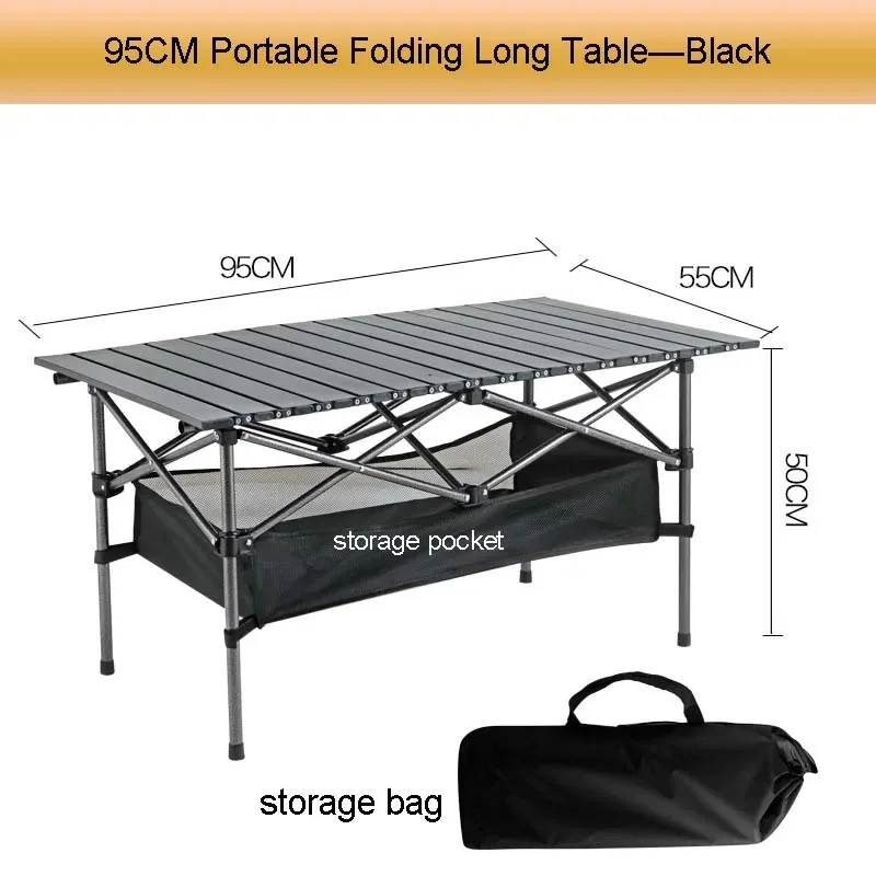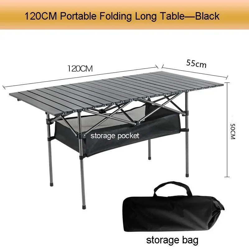 Feature6: Outdoor Folding Long Table Portable Storage Black Camping Desk Barbecu