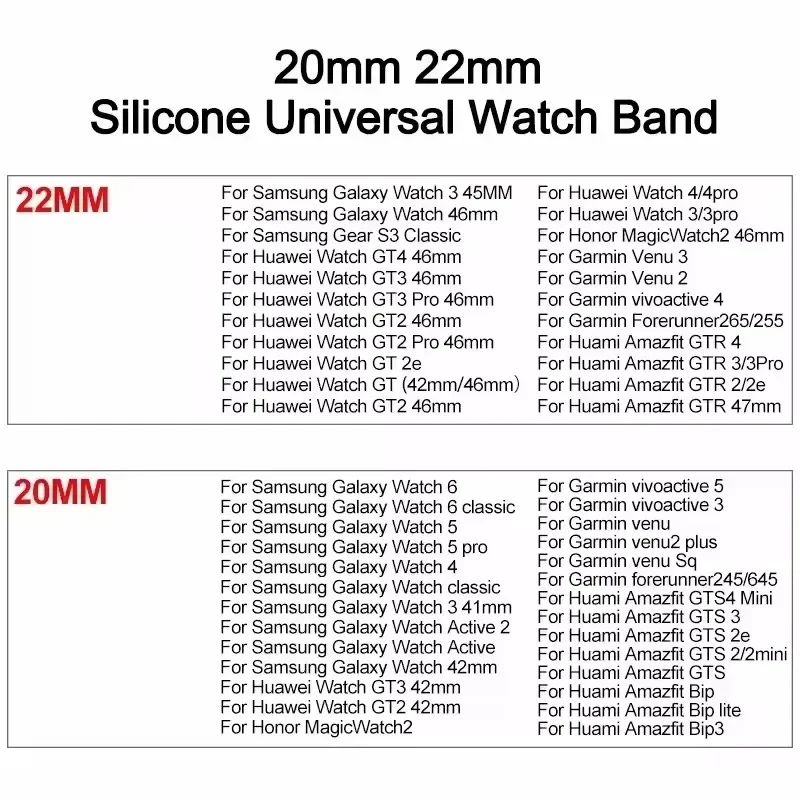 20mm 22mm Strap For Samsung Galaxy Watch 6/4/5 Pro/Classic/Gear S3/Active 2 Sport Silicone Magnetic Buckle Huawei GT 2 2e 3 Band