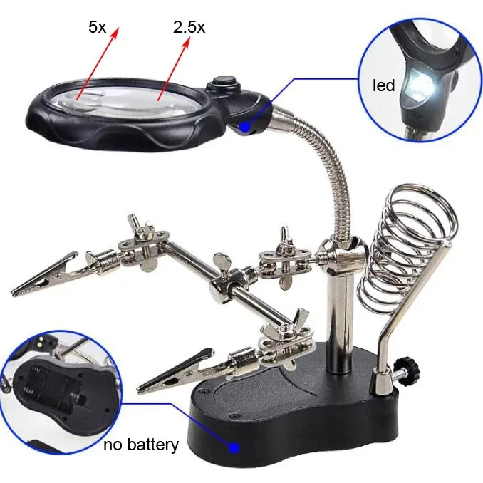 3.5X 12X Helping Hands Third Hand Soldering Iron Welding Stand Station with 2 LED Clip Welding Magnifier Magnifying Glass