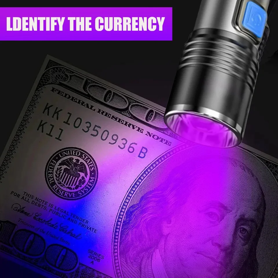 395nm UV Flashlight Blacklight Zoomable USB Rechargeable UV Light Ultraviolet Flashlight for Pet Urine Detection Resin Curing