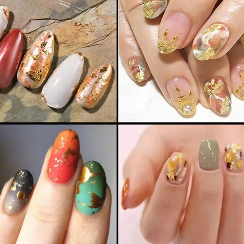 3G Nail Art Accessories Gold Silver Copper Foil Sequins: Glitter Leaf Flake Sheet Bulk Foil Paper For Gilding Manicure Decoration