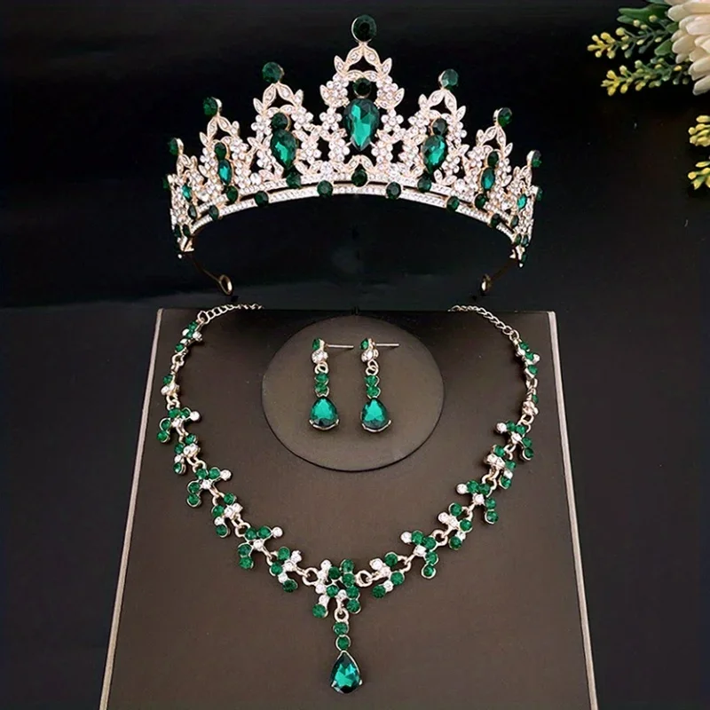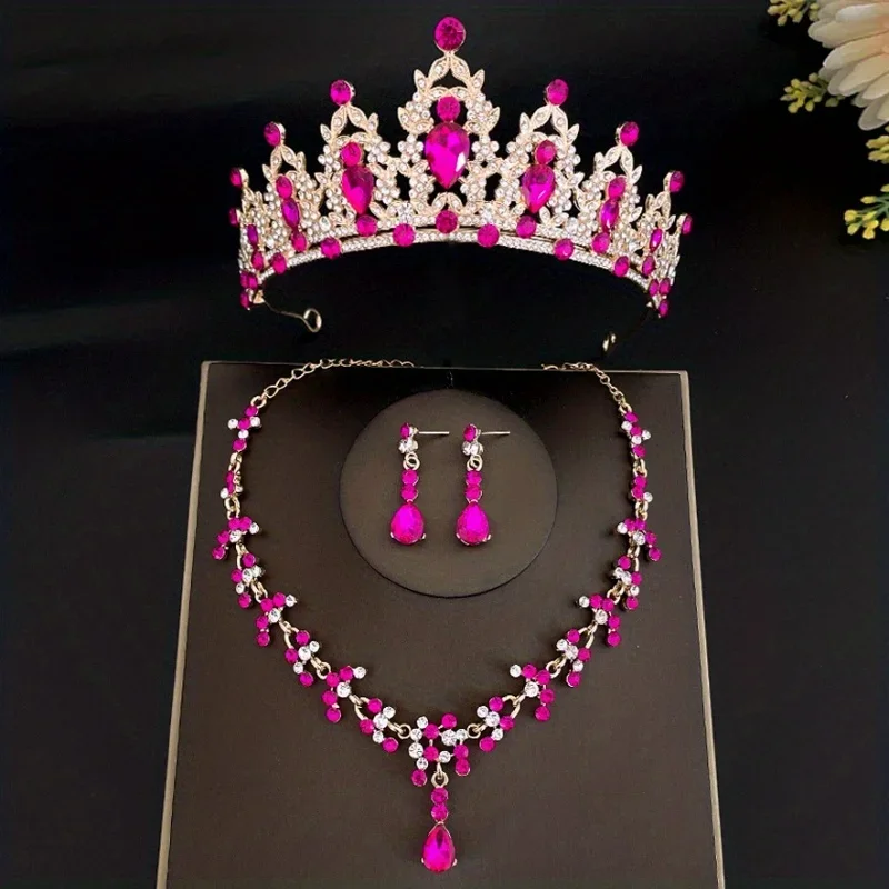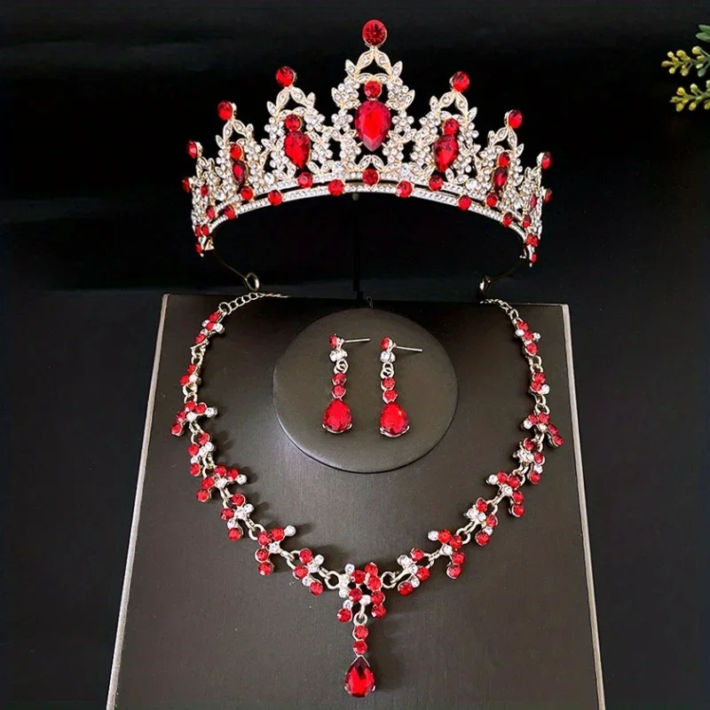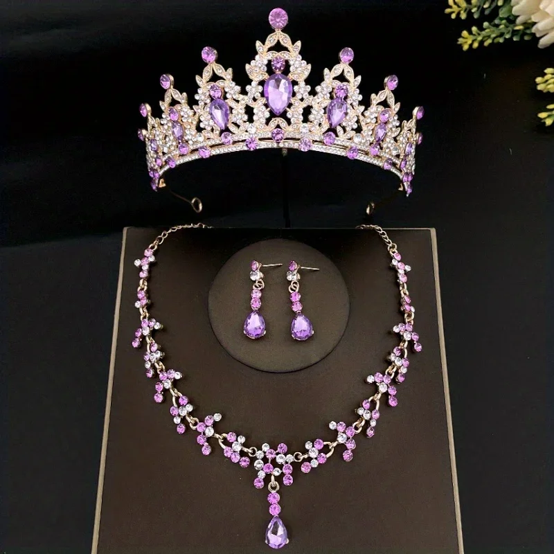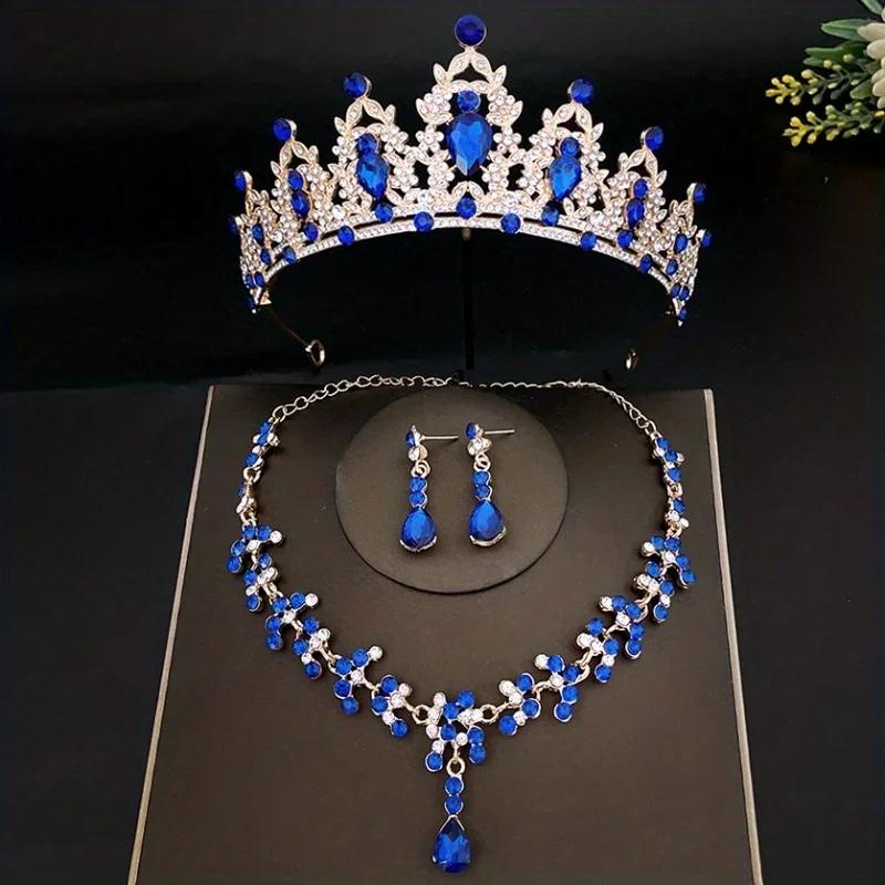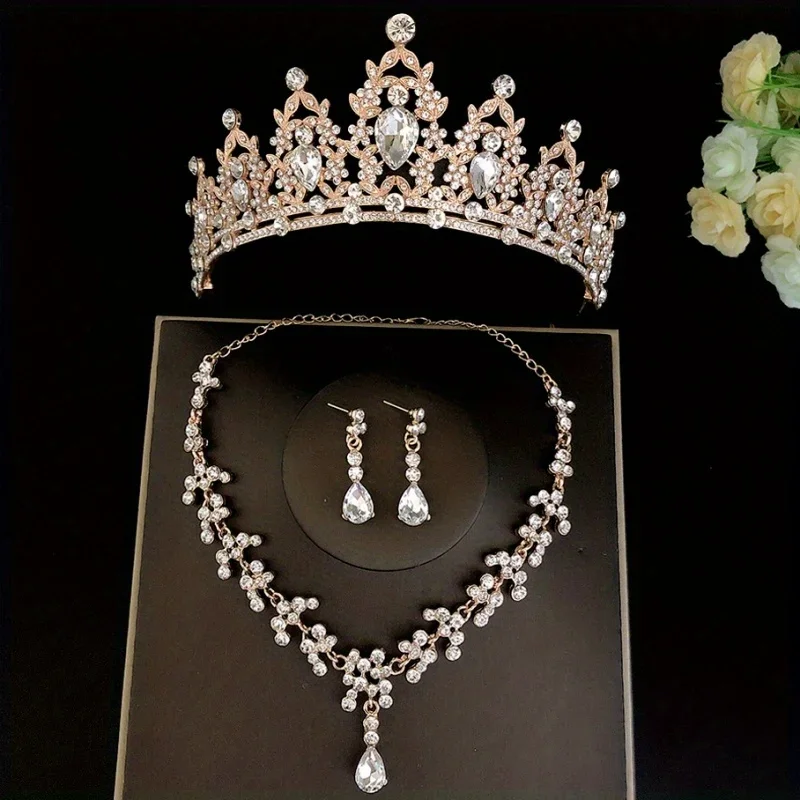 3pcs/set Crystal Bridal Tiaras And Crowns Earrings Necklace Jewelry Set For Women Bride RhinestoneWedding Hair Accessories Crown
