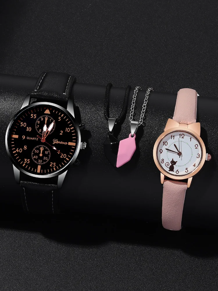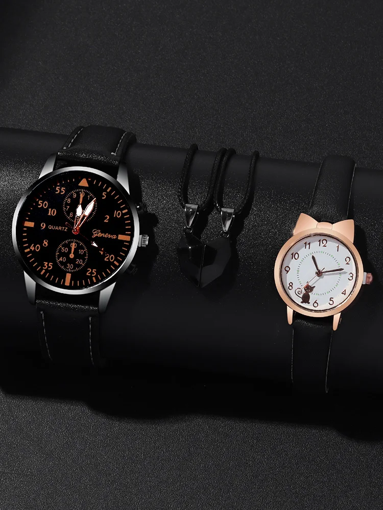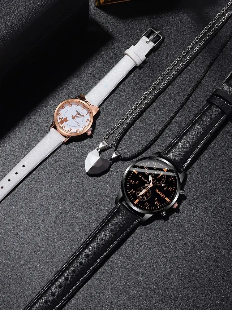 • Fashionable Design :This couple watch set features a stylish and creative design, perfect for fashion-forward couples. The quartz watch with a love pendant necklace is a unique accessory that adds a touch of personality to your outfit.