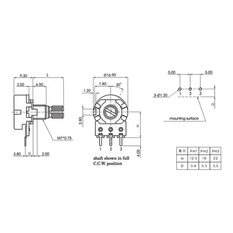 WH148 Linear Potentiometer 15mm Shaft With Nuts And Washers 3pin WH148 B1K B2K B5K B10K B20K B50K B100K B250K B500K B1M