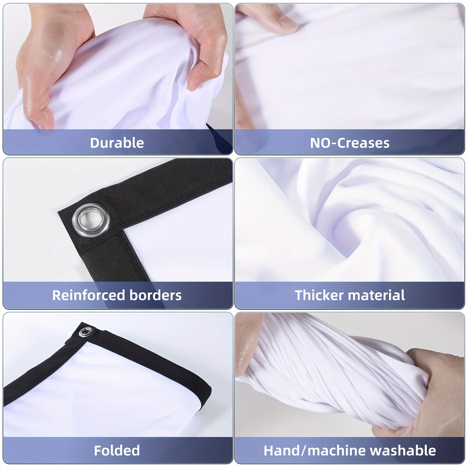 Wrinkle Free Design: The wrinkle-free design of this projector screen ensures a smooth and clear projection, eliminating any visual distortions.