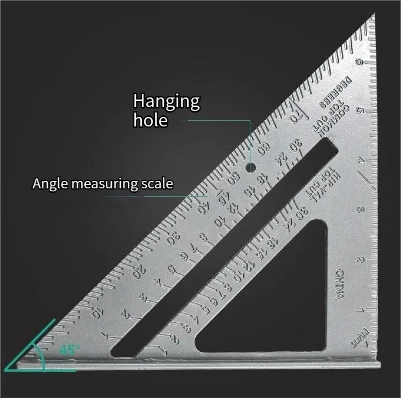 • Versatile Triangle Shape :The triangle shape of the ruler allows for a variety of uses, including measuring angles, heights, and distances, making it a versatile tool for any woodworking project.