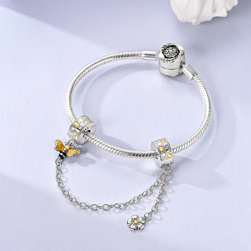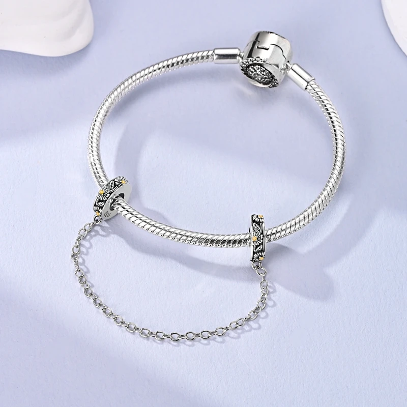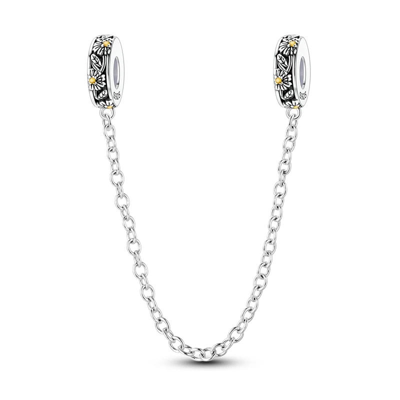 925 Sterling Silver Safety Chain Aircraft Earth Camera Daisy Silicone Charms Beads Fit Original Bracelets DIY Jewelry For Women