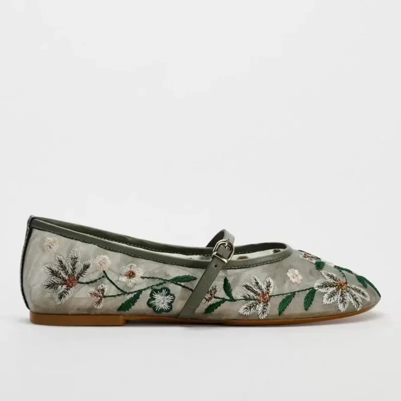 Model Number: Mesh Breathable Ballet Flats Women Luxury Designer Embroidered Flower