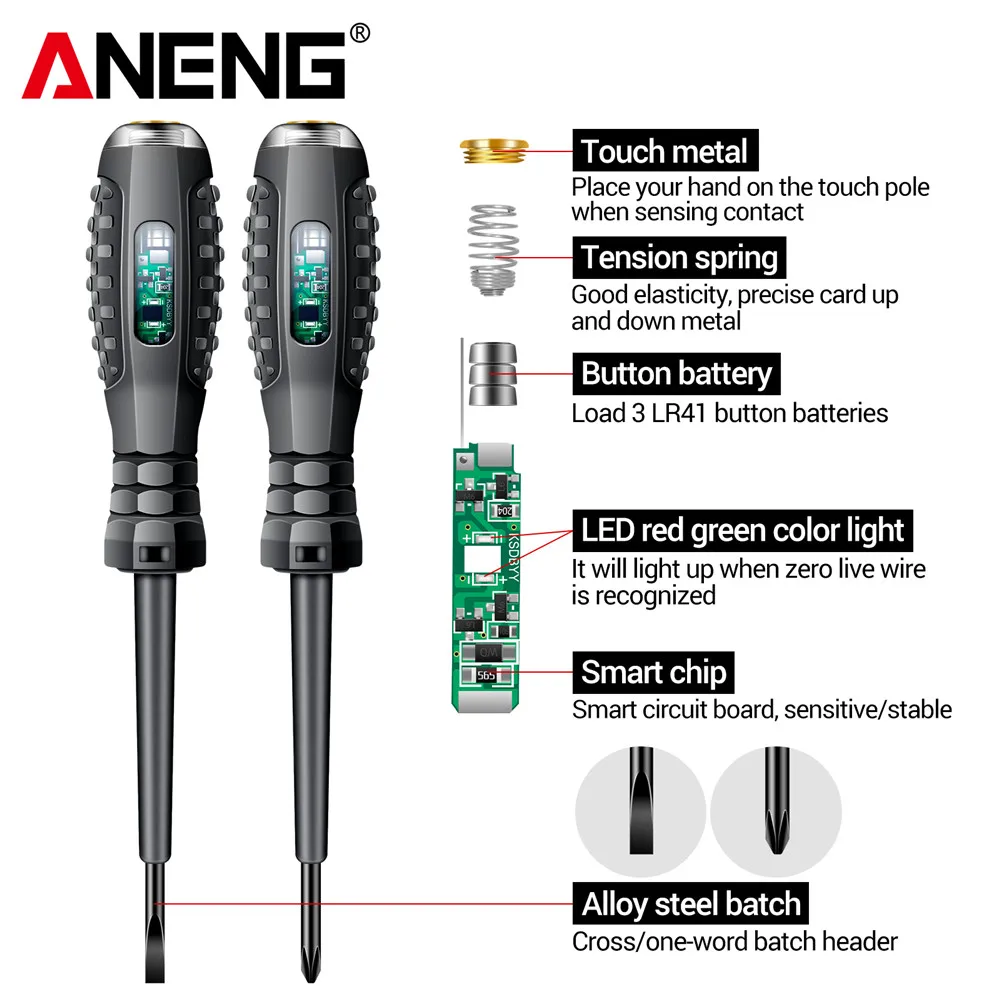 ANENG B05 Slotted/Phillips Screwdriver Neon Bulb Indicator Detector Insulated Electrician Pocket Tester Pen Tools