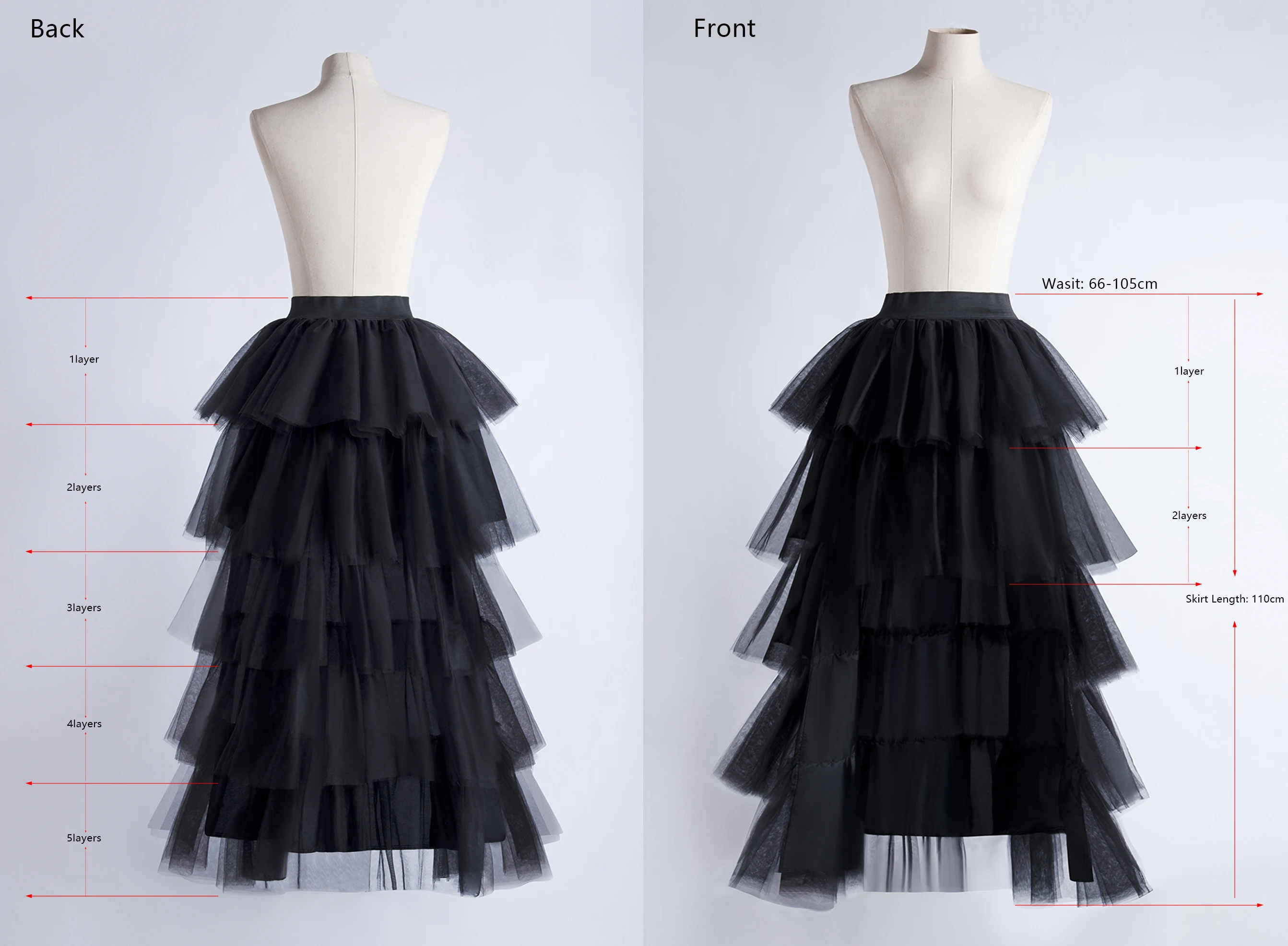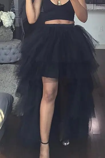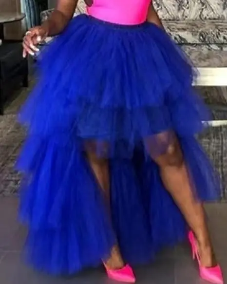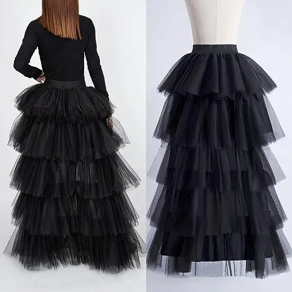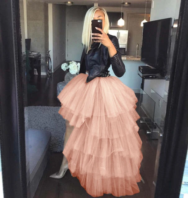 BABYONLINE Women Tiered Tulle High Low Skirts Elastic Waist Petticoat Puffy Long Tulle Skirt Female Maxi Skirt Free Size