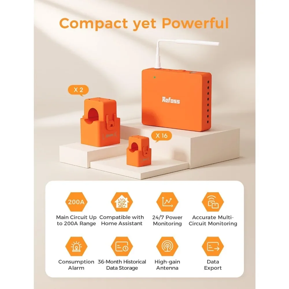 Home Assistant, Real-Time Accurate Energy Consumption Tracking, Electricity Usage Monitor with 16x60A Circuit Sensors, 36-Month History, Solar Metering, 2.4G