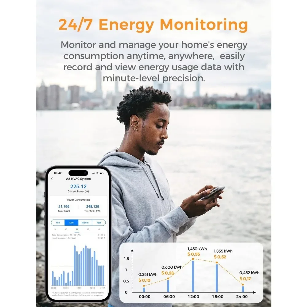 Comprehensive Energy Data: The power monitor provides 98% accuracy and stores up to 3 years of detailed electricity usage data. With clear minute, hour, day, month, and year consumption and cost charts, you can easily understand your energy use. Ideal for homeowners adjusting appliance usage to save on bills or businesses tracking long-term energy savings and emission reductions. Historical data can also be exported for further analysis, making every electricity expense transparent.