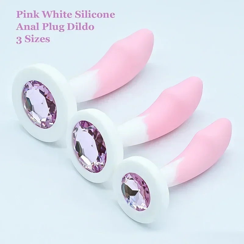 Butt Plug Silicone Rubber 3 Sizes Crystal Gemstone Base Anal Plug BDSM Prostate Massager Masturbation Adult Sexy Tоy for Women