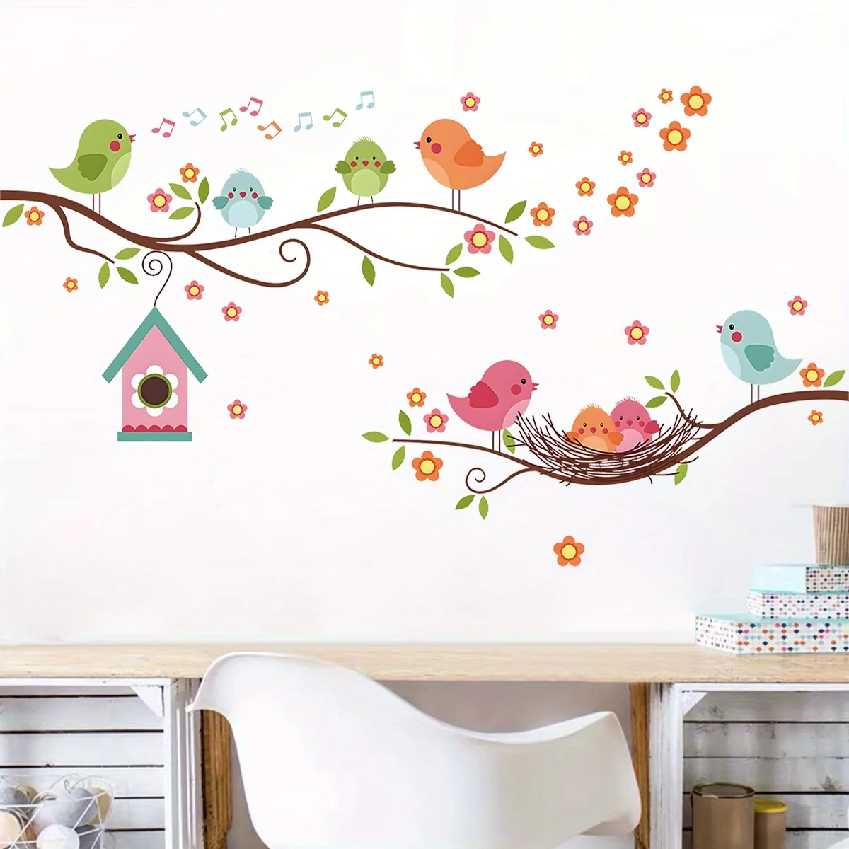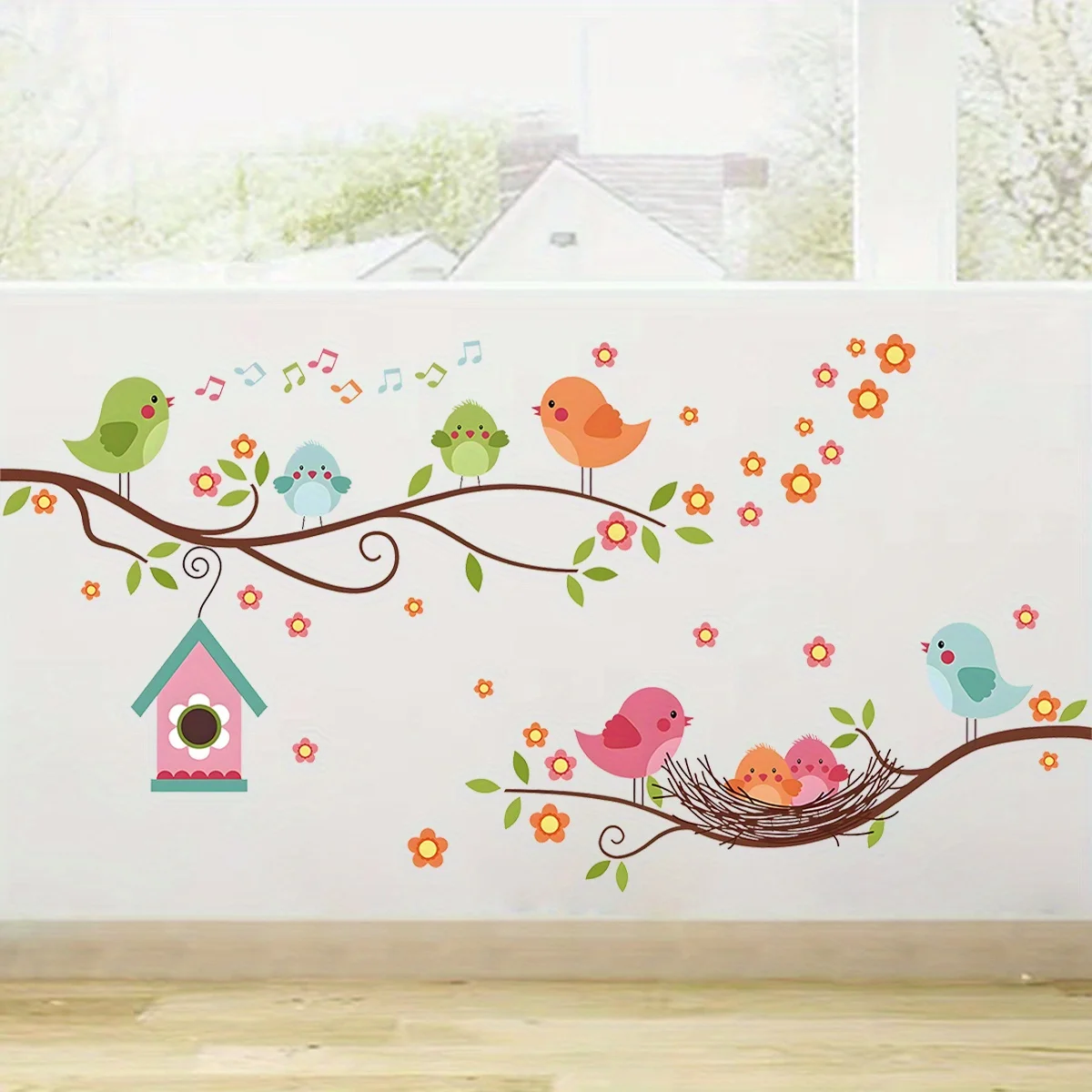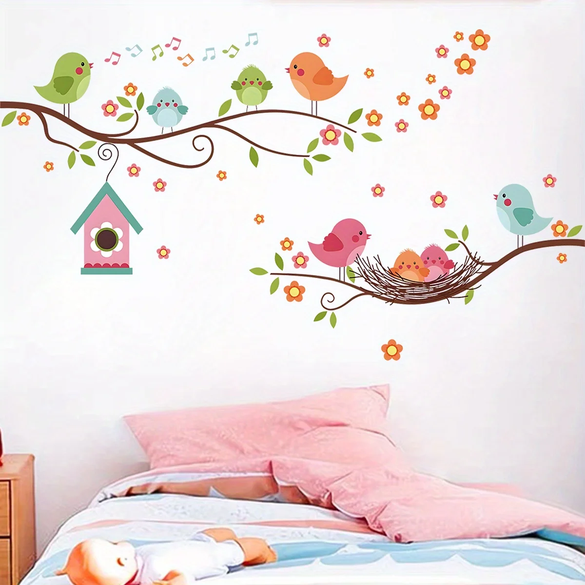 Cartoon Cute Bird Family Branch Flower Animal Wall Stickers Removable for Bedroom Living Room Foyer Decoration Wall Decals