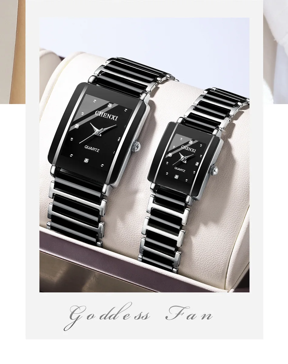CHENXI 104A Brand Men Quartz Watch Elegant Square Dial reloj Ceramic Strap Waterproof Simple montre Lady Fashion Couple Watches