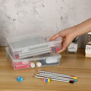 Clear Plastic Storage Box with Flap Lid, Multipurpose Craft Organizers and Storage Box Art Supply Storage Organizer Plastic Sewing Box for Pencils Markers Notebooks A4 Files