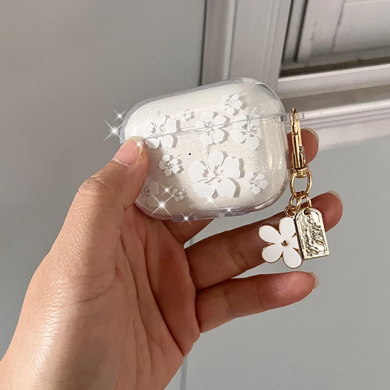 Flashing small flowers earphone case for Airpods | White shell print earphone case for Airpods | ||||||