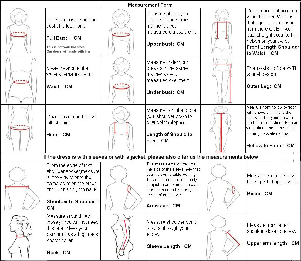 1) Bust ______cm/inch