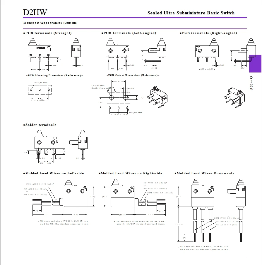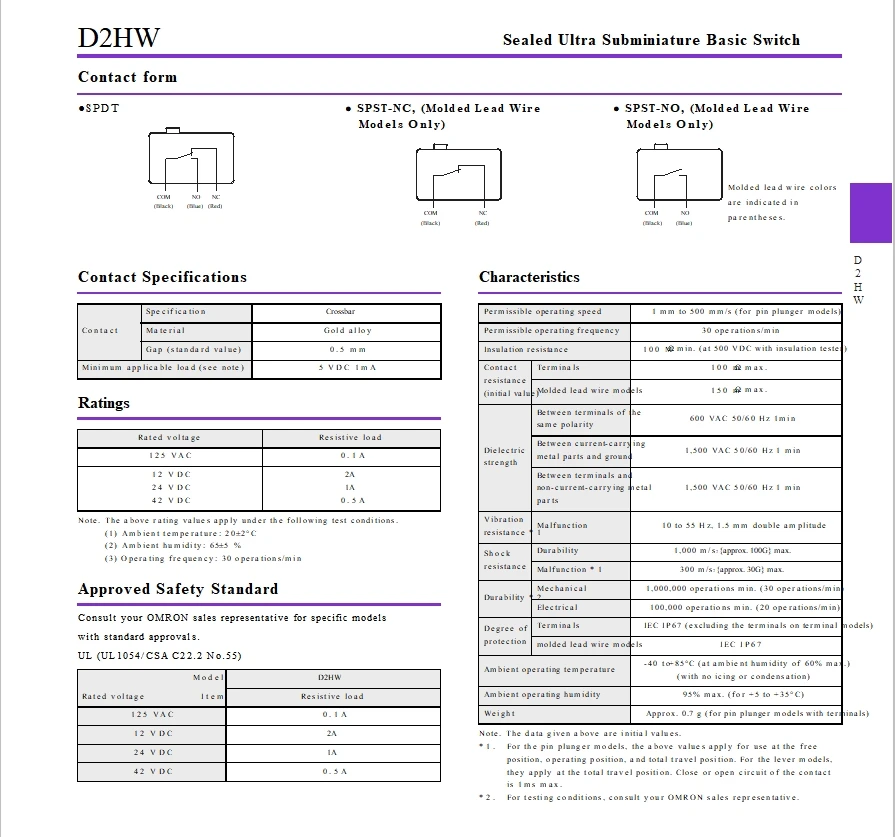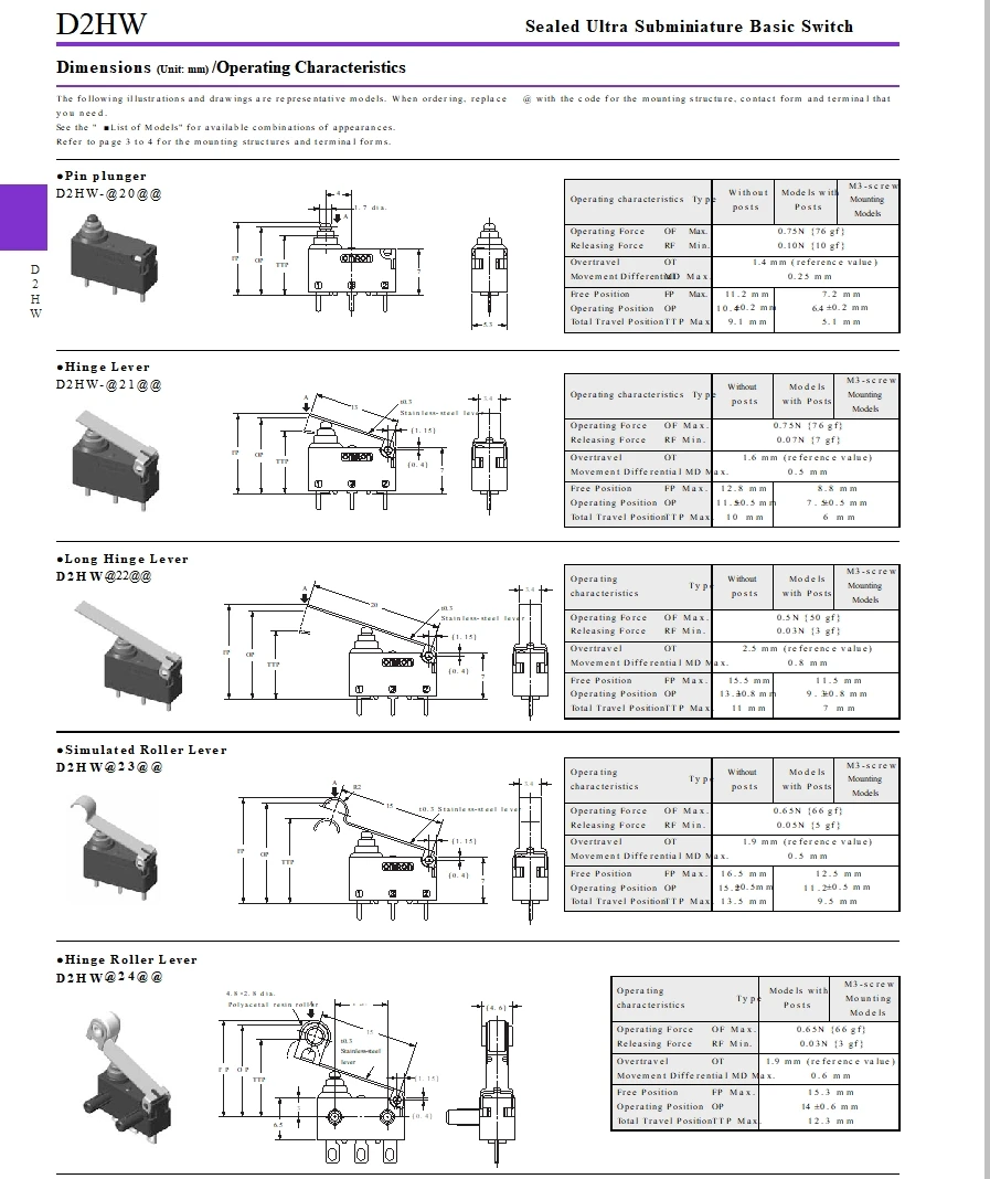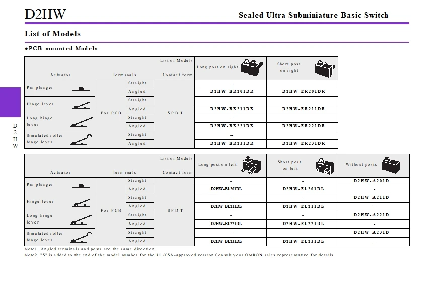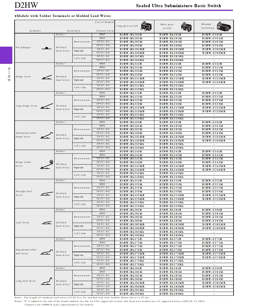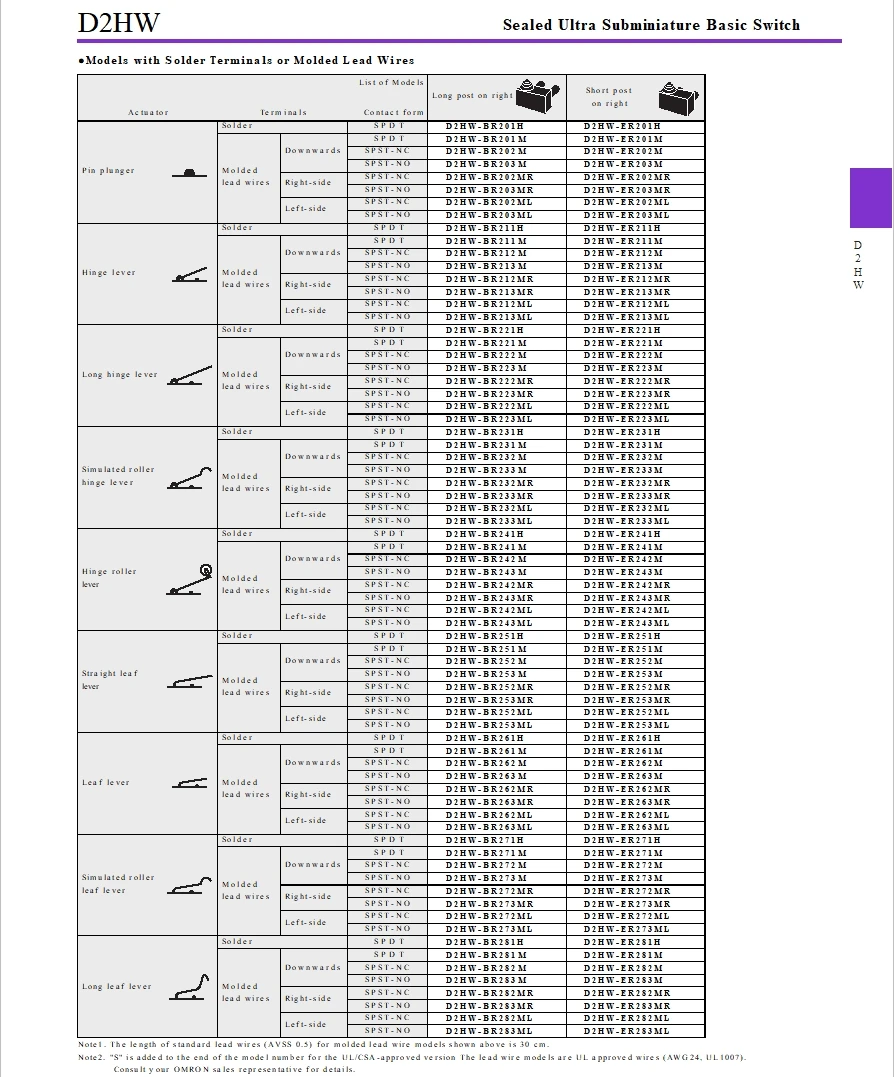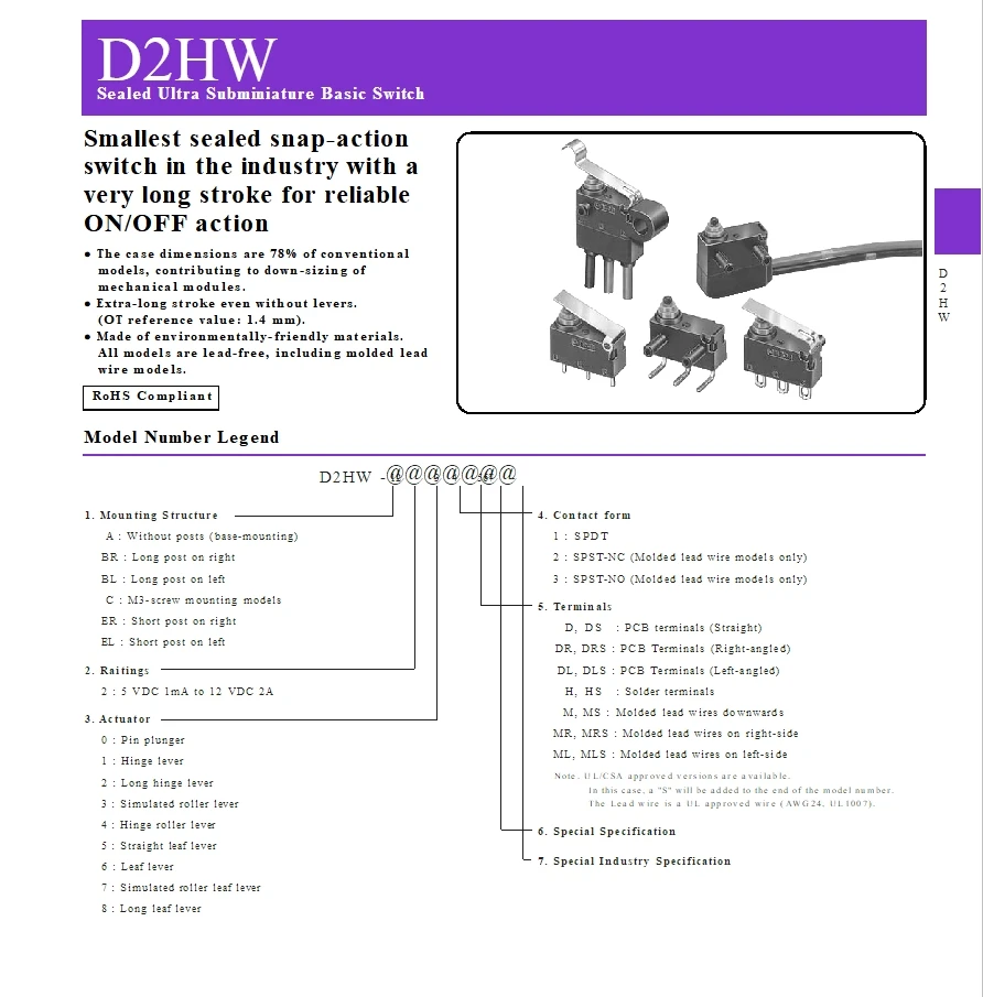 D2HW Original D2HW- A201H Sealed Subminiature Snap Action Switch D2HW- A201D For OMRON Waterproof Car Door Lock Micro Switch