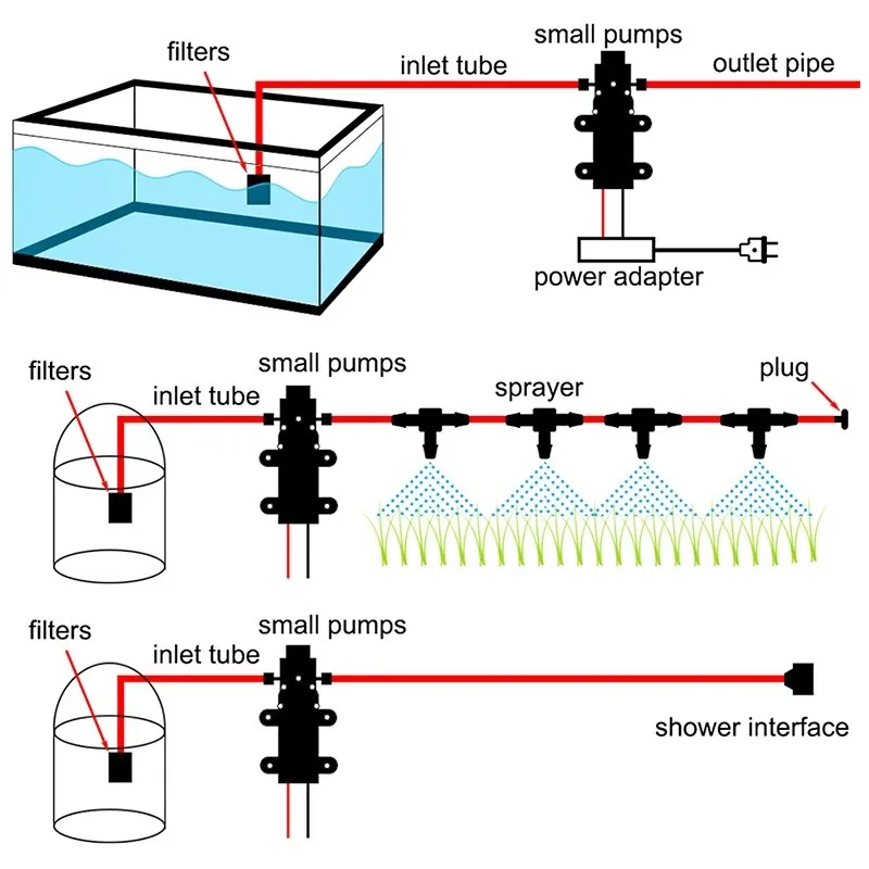1.Diaphragm pump combines the advantages of self-priming pump and chemical pump. Installed in a dry, well-ventilated location; pumps can not work in water.