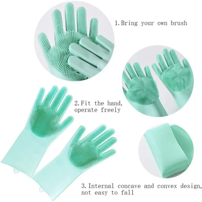 The gloves are ideal for long and short haired dogs,cats,horses,rabbits and other pets,grooming the hair quickly,gently and effectively. It also can be used for kitchen,cleaning the bathroom & bed room,washing dishes,removing wardrobe dust,fruit & vegetable cleaning.