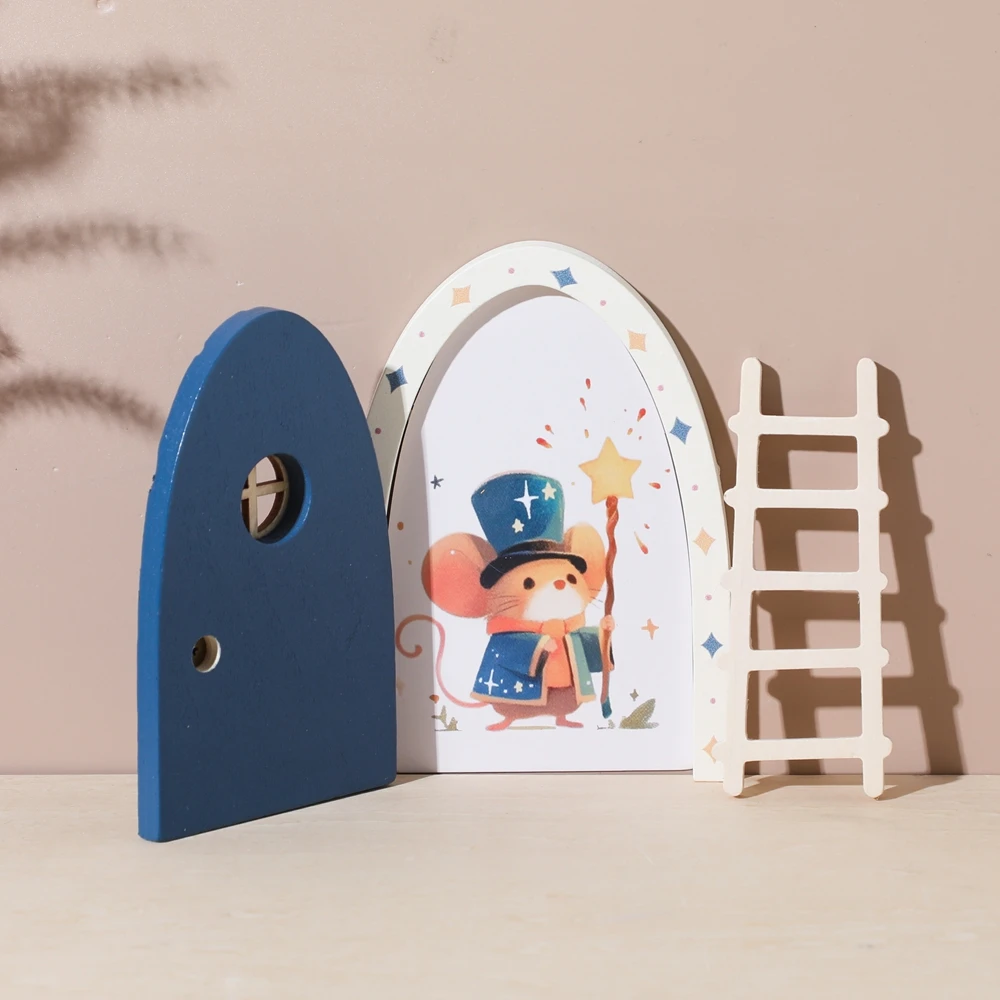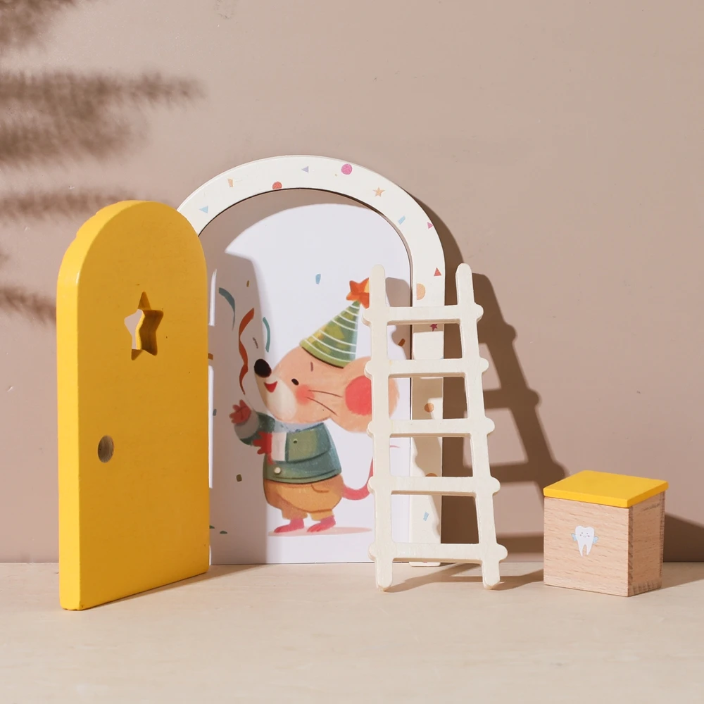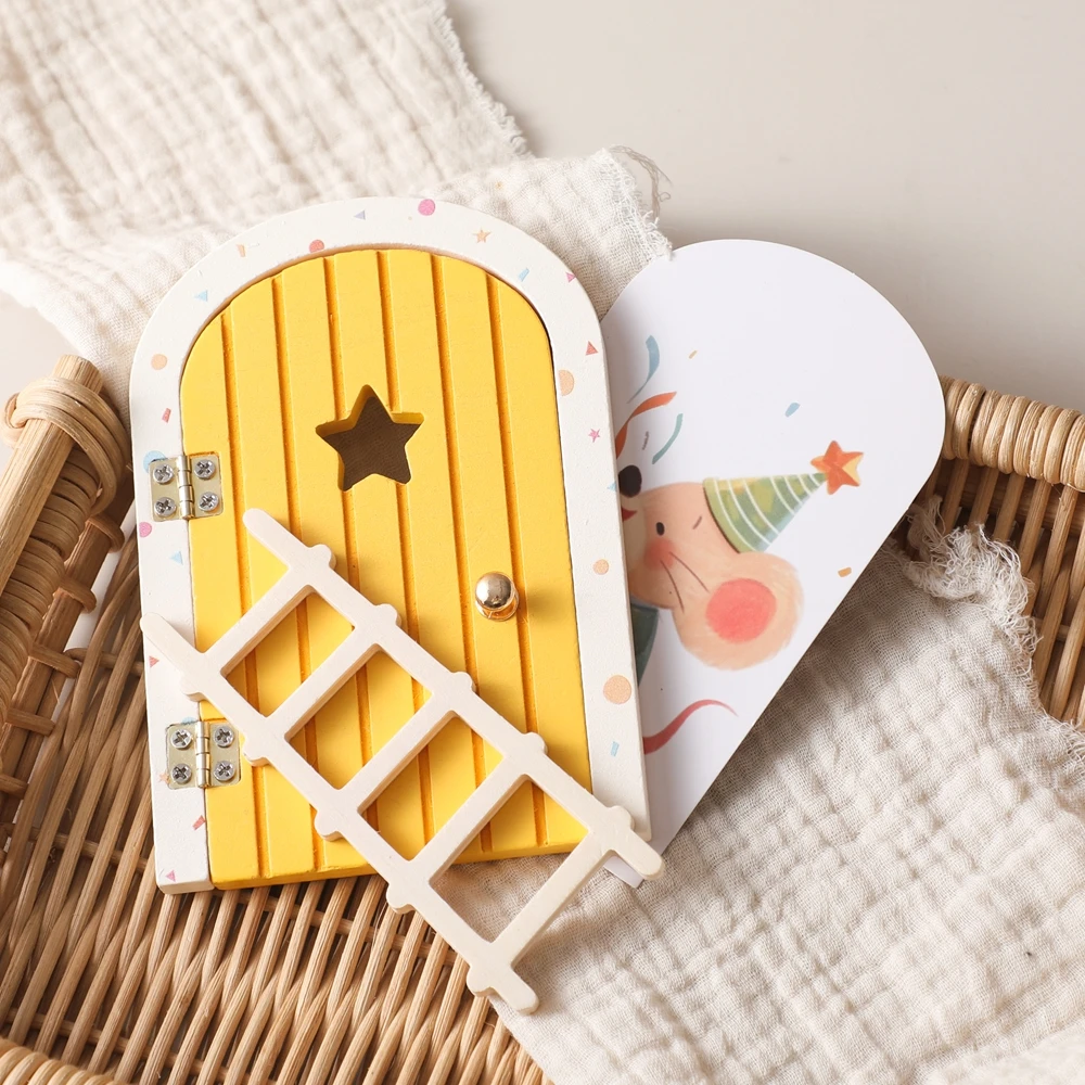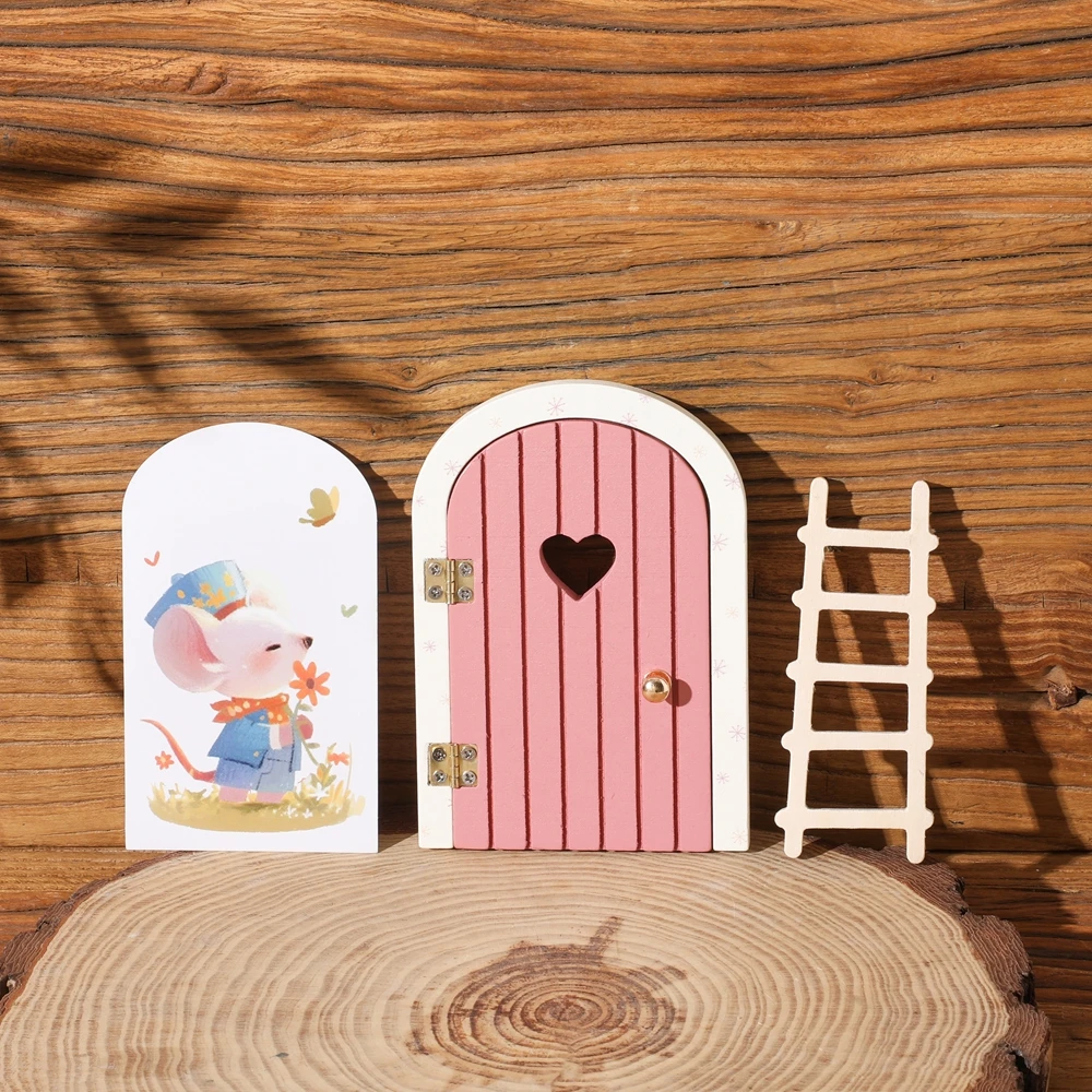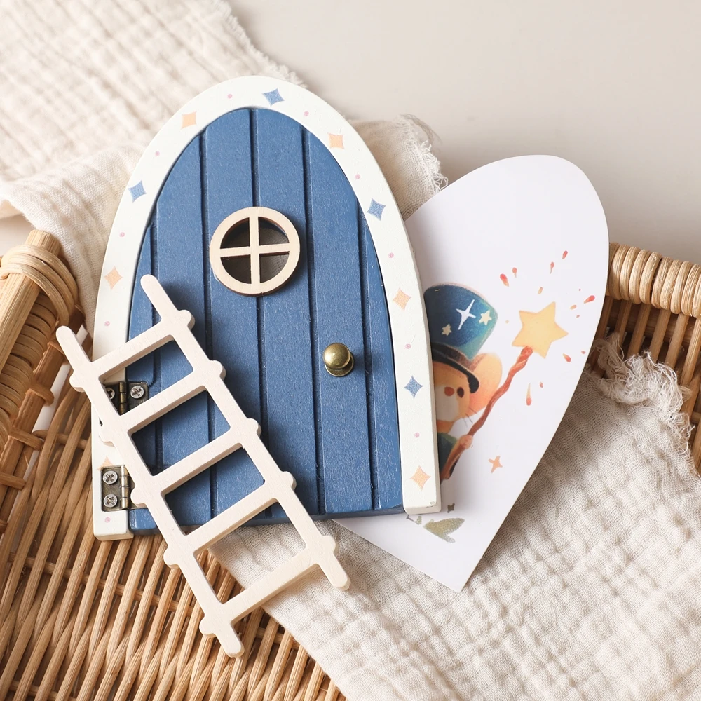 Dollhouse Mini Home Decorations Wood Fairy Elf Door Fairy Tale Gate Door Decoration Craft Ornaments Commemorative Tooth Box