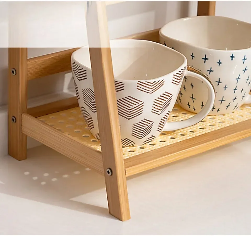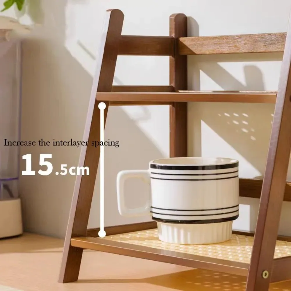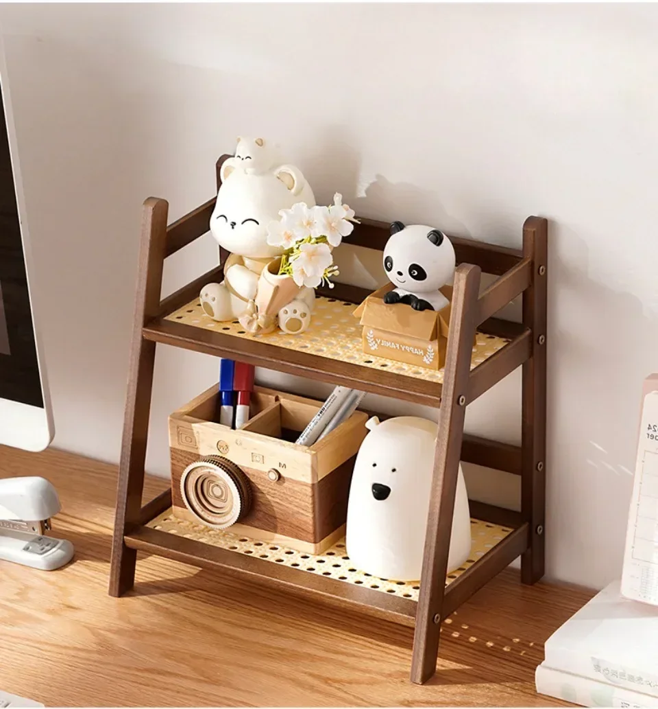 Double Layer Bamboo Rack 2-Tier Desktop Organizer Display Racks Office Stationary Office Storage Makeup Organizion for Vanity