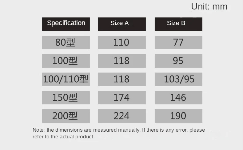 Size:80mm 100mm 110mm 150mm 200mm