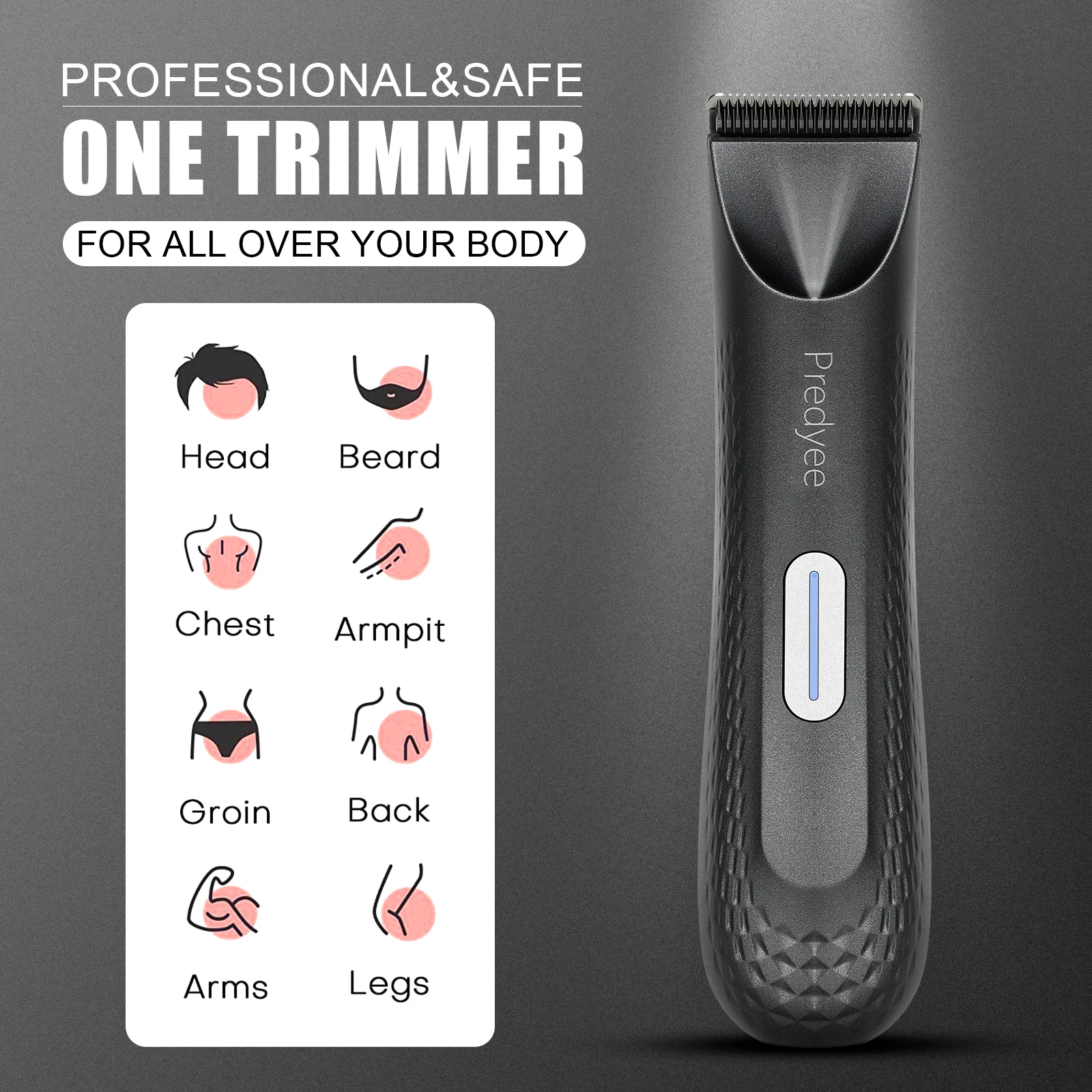 Body, Pubic& Back – Predyee hair trimmers were designed for below-the-waist grooming but work great on your not so private parts too! Our Trimmer’s Black ceramic blades trim hair never cutting, tugging, or irritating the skin. You can use it with confidence to keep your manhood looking trim, neat, and clean. Get the job done quick & exact results you're looking for.