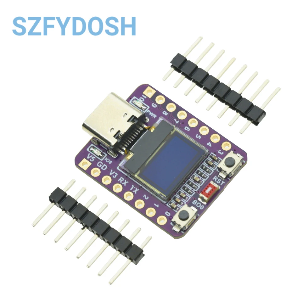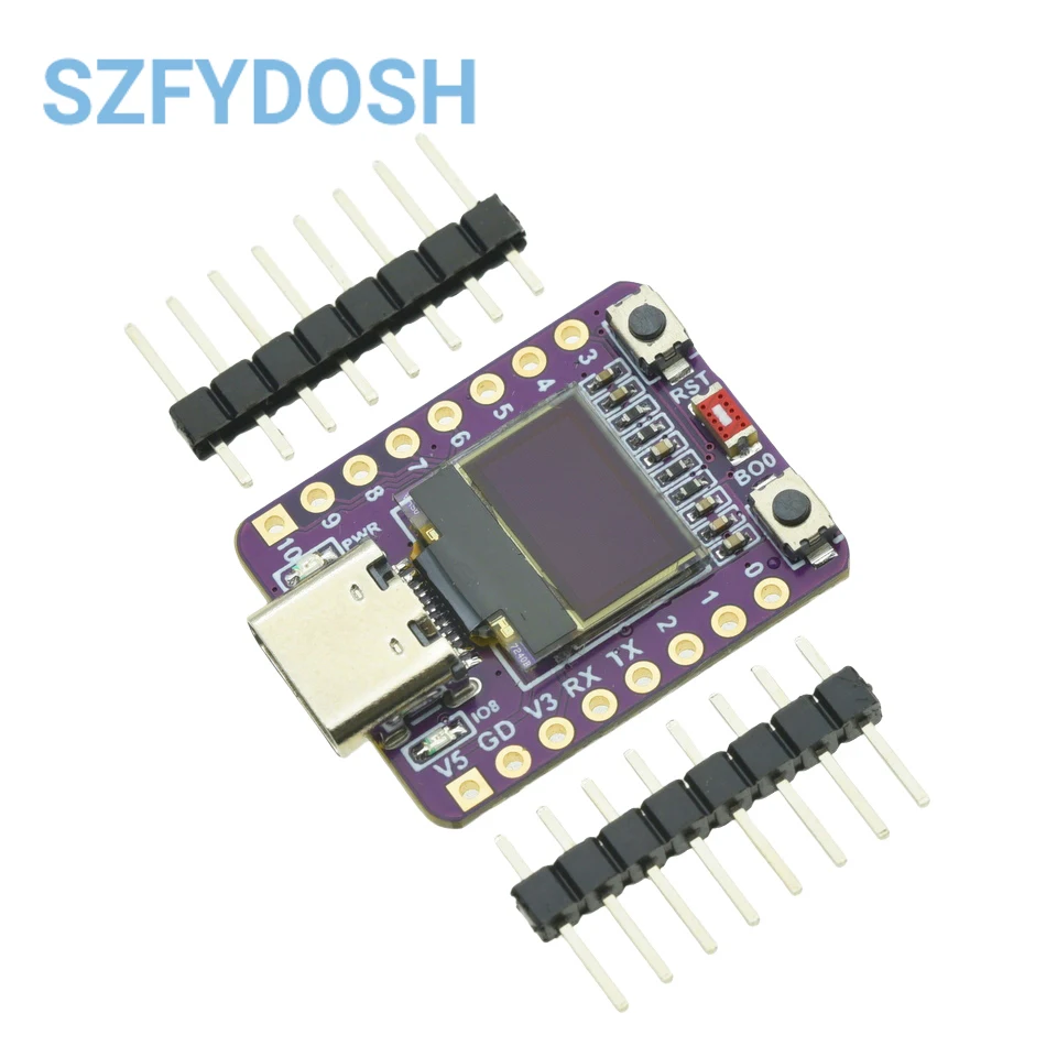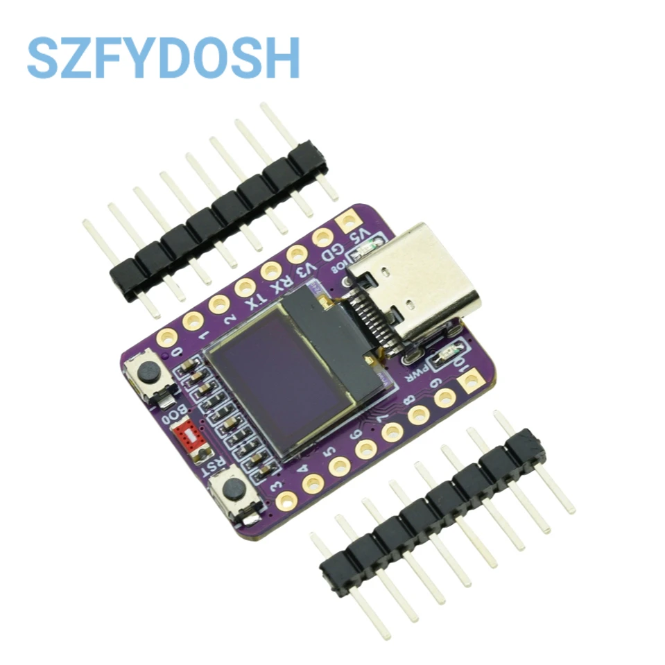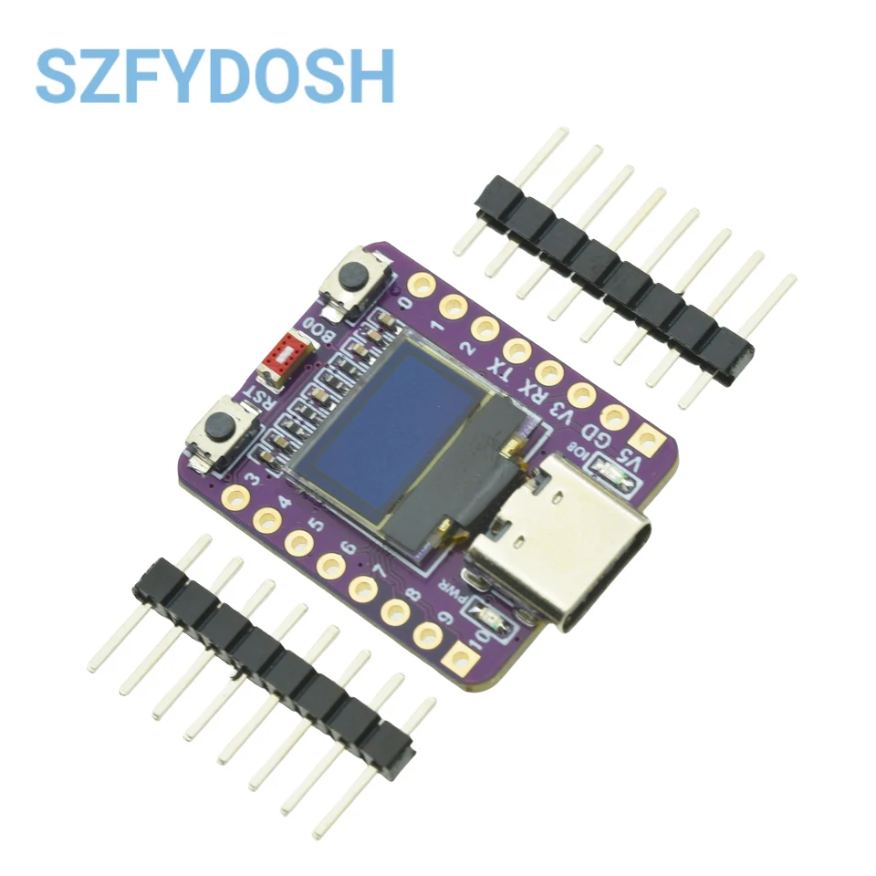 ESP32C3 0LED development board based on ESP32C3FN4/FH4 design and production of core board, built-in 4M flash, with WiFi and Bluetooth two modes, onboard ceramic antenna, equipped with 0.42 inch 0LED screen, support for usb download, invested heavily in the launch of gold ESP32C3 0LED development board.