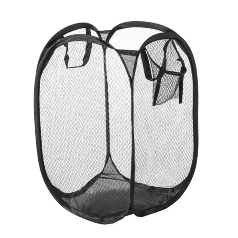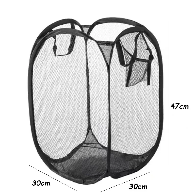 The mesh pop-up laundry basket features a folding design, this pop-up laundry basket can be twisted into a small size to help you save space. Large-capacity pop-up laundry basket, durable mesh laundry basket with a large opening that can easily accommodate more clothes, sporting goods, merchandise, toys, etc.