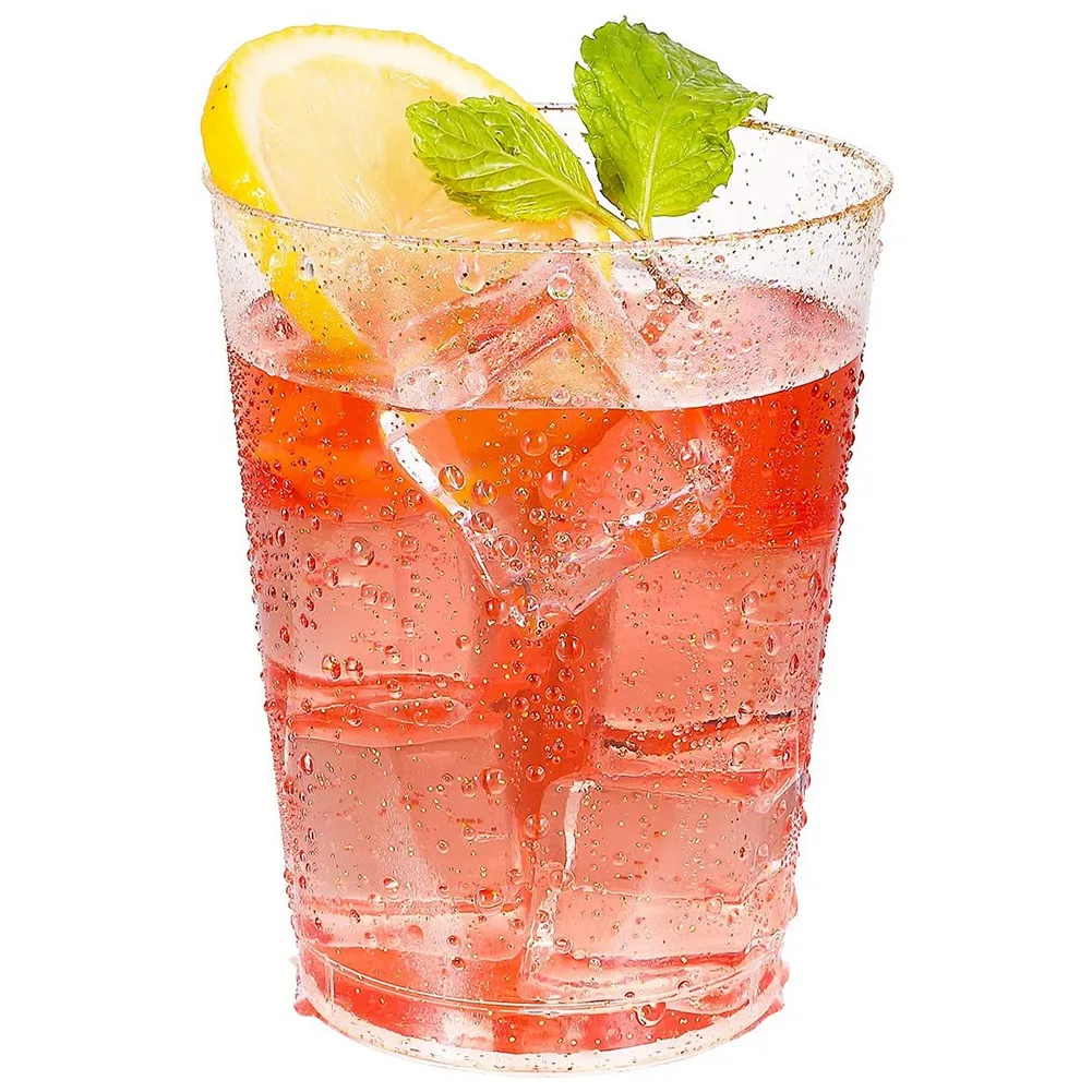 Gold Plastic Cups Disposable Gold Glitter Plastic Wine Glasses Clear Plastic Cups Tumblers Christmas Party Cups