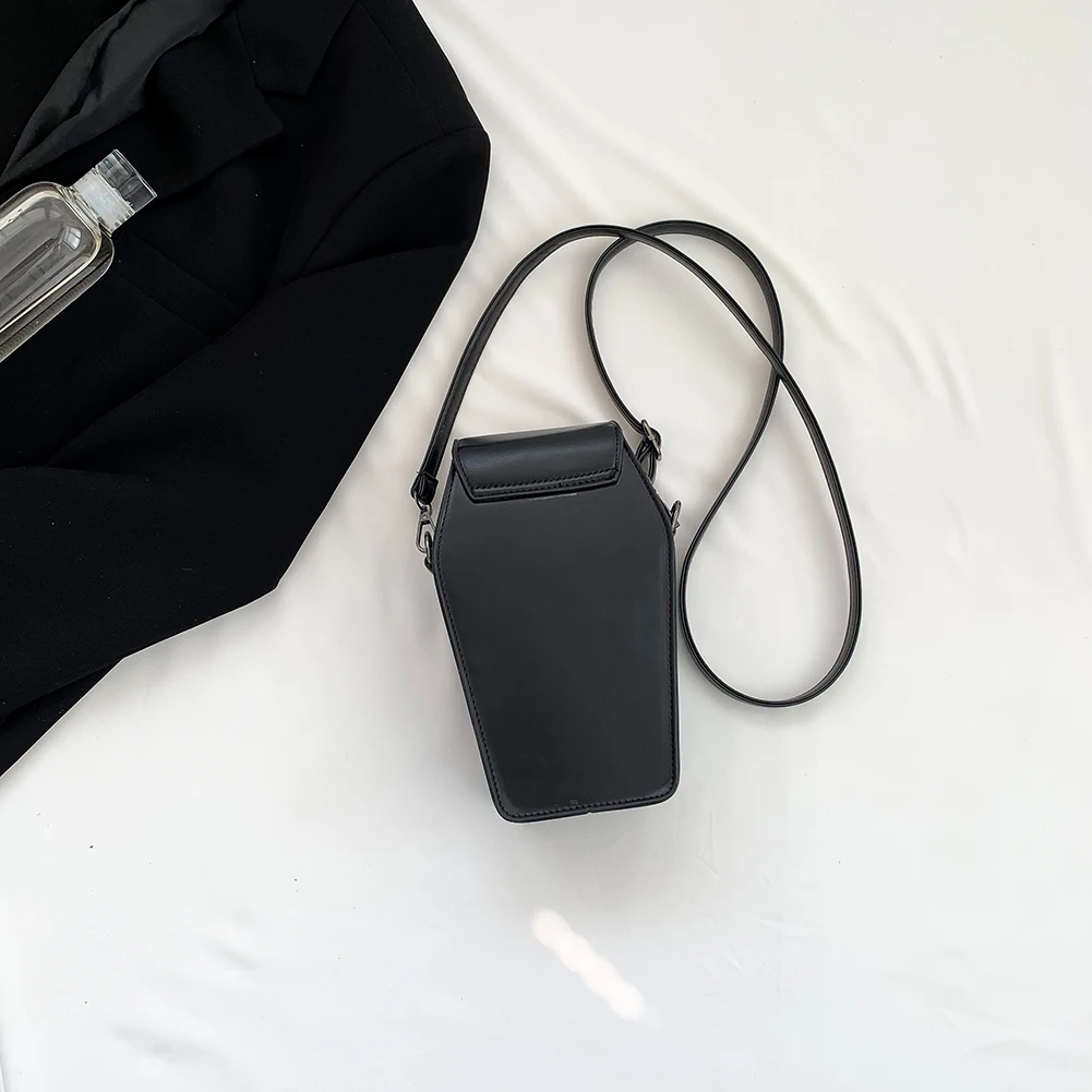 Women Coffin Crossbody Purse Gothic Y2K Coffin Cellphone Tote Bag Skull Shoulder Bag PU Leather Halloween Versatile Bag Features: 1.Quirky Design: Stand out from the crowd with this stylish and quirky Halloween-themed coffin-shaped crossbody bag for women. Its unique design is sure to catch attention and ignite conversations wherever you go. 2.Easy Maintenance: This fashionable coffin satchel purse is made from soft and comfortable PU fabric, ensuring a pleasant tactile experience. Additionally, the material is easy to clean and maintain, making it perfect for everyday use. 3.Compact Size: Despite its compact dimensions of 140mm x 65mm x 220mm, this skull gothic shoulder bag provides enough space to accommodate your wallet, phone, keys, and other small essentials. Stay organized while enjoying the convenience of a portable and practical accessory. 4.Versatile for Various Occasions: Whether it’s shopping, traveling, vacationing, or attending parties, this cross crossbody pouch is suitable for a wide range of occasions. It effortlessly complements different outfits and adds a touch of fun and style to any event. 5.Perfect Gift : Ideal for Halloween, women’s birthdays, holiday parties, or any special occasion, this y2k cellphone bag makes for a perfect gift. Surprise your friends, girlfriends, wives, mothers, and loved ones with this sweet and trendy accessory.