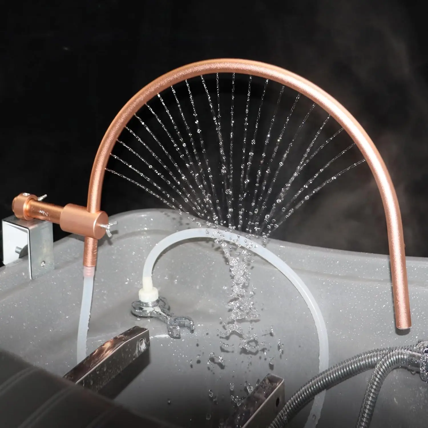 How to Use: Use the sink clamp to clamp the semicircular water outlet frame to the edge of the basin, and the sink clamp comes with a wing nut fixed design which make the frame easier to be removed or adjusted, and then put the pump into the bowl. Finally add water to the bowl, and the water level exceeds the pump body. Plug in and start with the switch cable, then you can easily achieve water circulation.