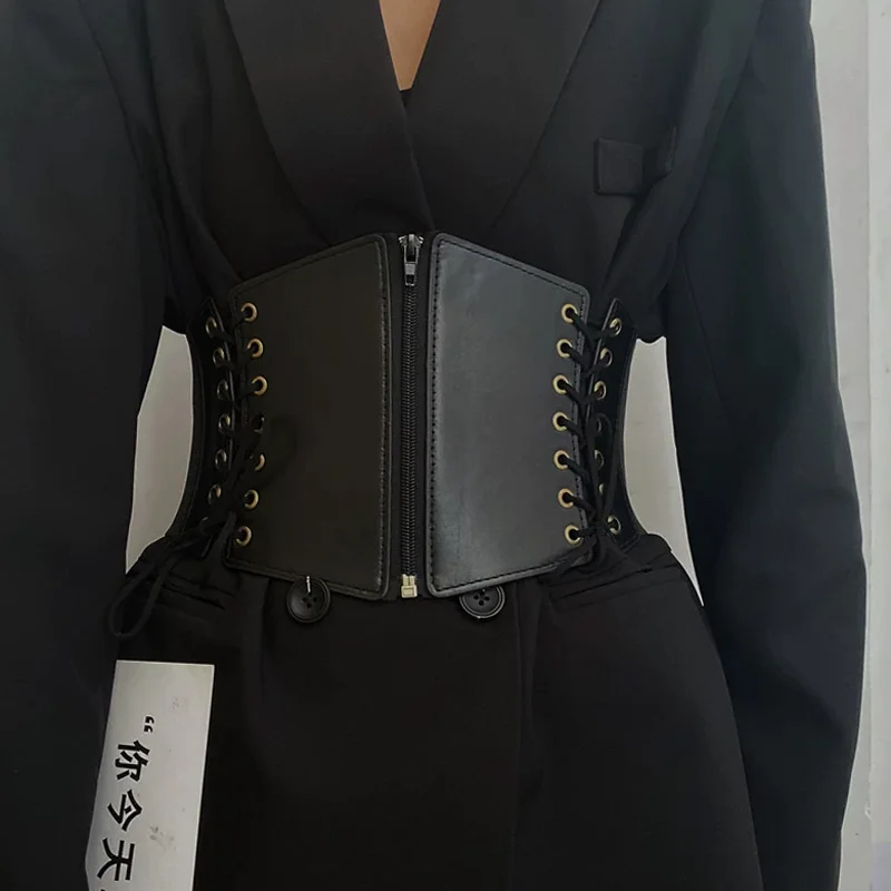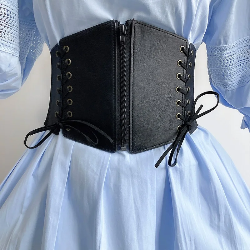 Lace Up Front Corset Belt For Women Punk Wide Belt Female Slimming Body Elastic Bustier Waistband Hip Hop Gothic Dress Girdle