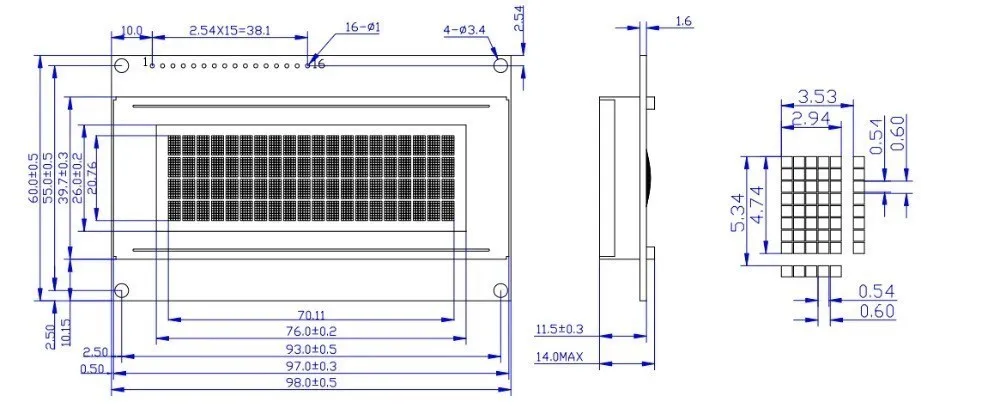 A variety of software features: cursor display, screen shift, custom characters, sleep mode, etc.