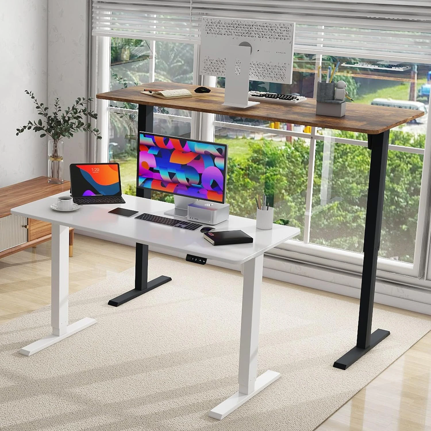 Lifting desk electric high grade model only leg load weight about 60kg (leg) standing Desk Up and Down Height Adjusted Ergonomics Lifting Desk Lifting Table Electric Desk Safety Collision Memory (Table Board Not Included)