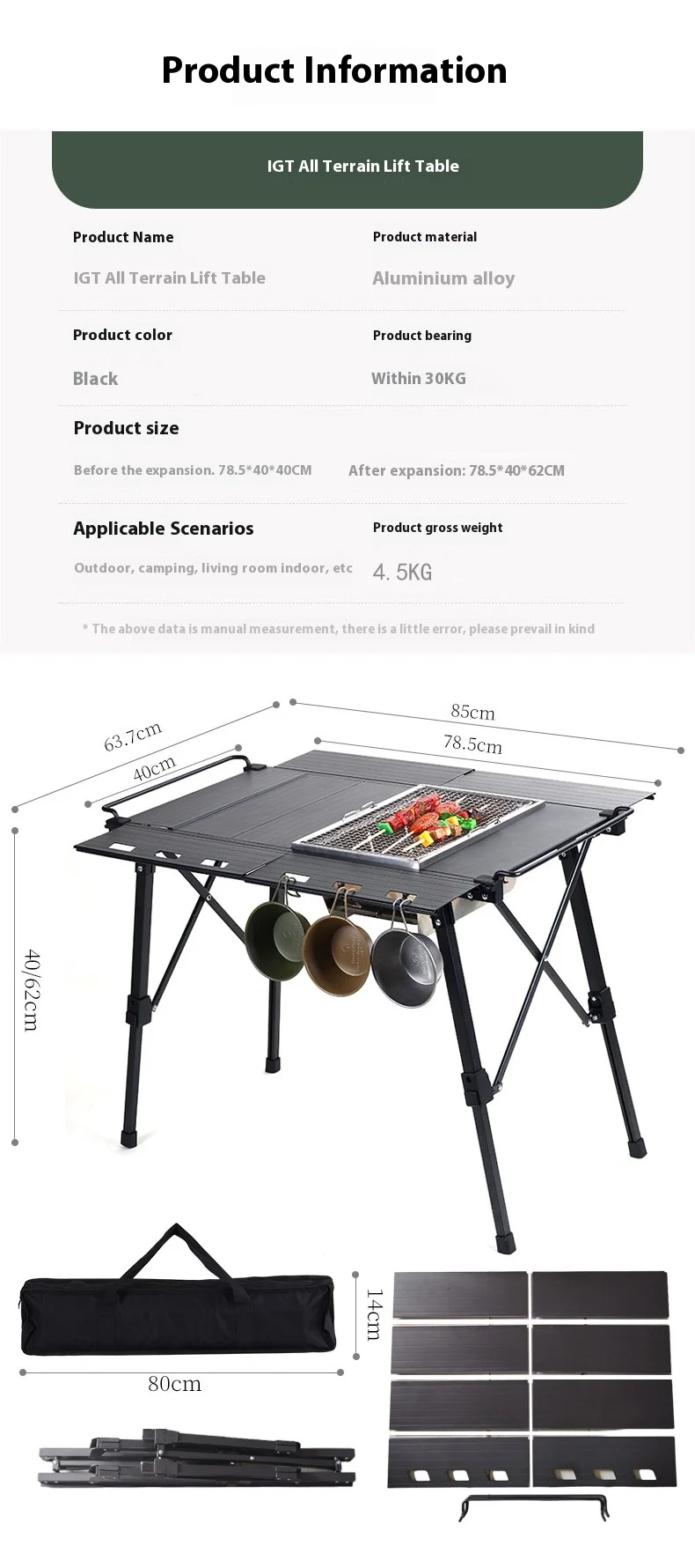 Lohascamping Folding IGT table Lightweight Backpack roll table multifunctional adjustable leg desk Desktop burner bbq table