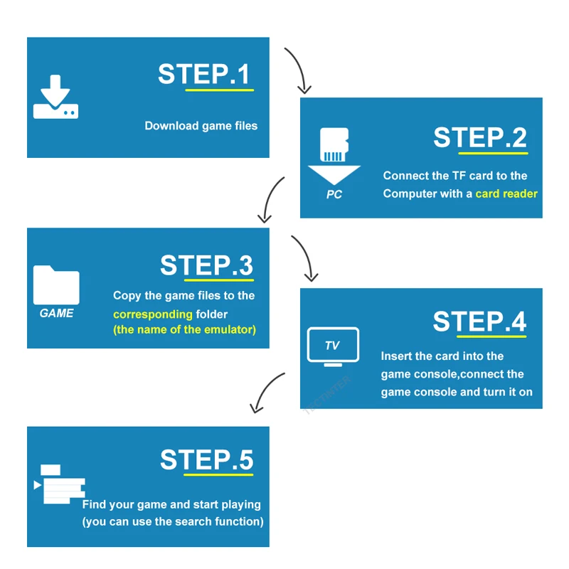 Step 4:Insert the card into the game console,connect the game console and turn it on